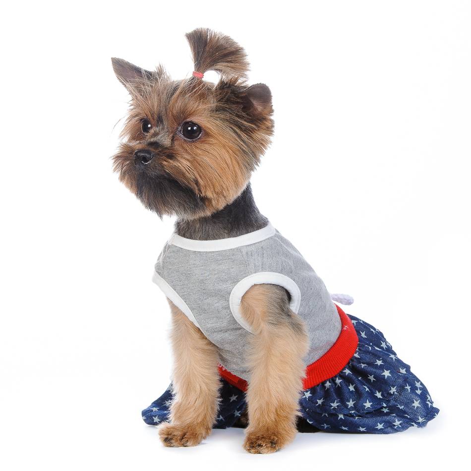 Petmax представляет новую весенне-летнюю коллекцию одежды для собак. Платье серо-синее с рисунком "Звезда" на спине - практичный и стильный аксессуар, который подойдет как для повседневного ношения, так и для проведения фотосессии.