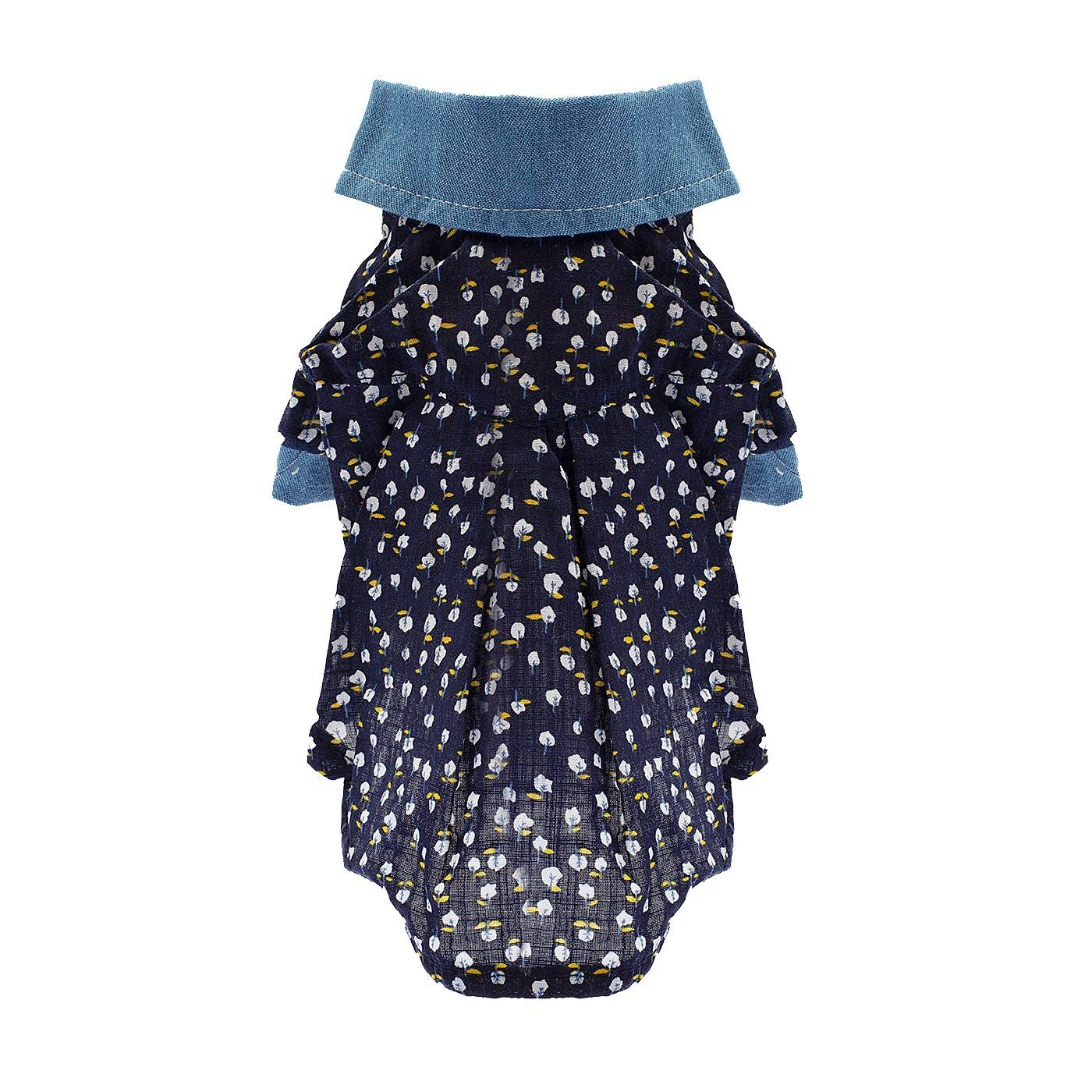 Рубашка синяя с флористическим рисунком для собак подходит для повседневного ношения, праздничных мероприятий и для проведения фотосессий. Легкая ткань рубашки защитит питомца от палящего солнца в яркий солнечный день, поможет комфортно себя чувствовать в прохладные дни.