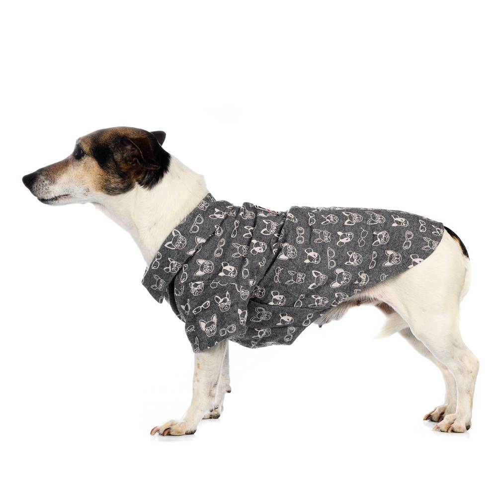 Рубашка классического кроя с рисунком и отложным воротничком подойдет любому питомцу. Она легко надевается, не сковывает движений и очень стильно смотрится.