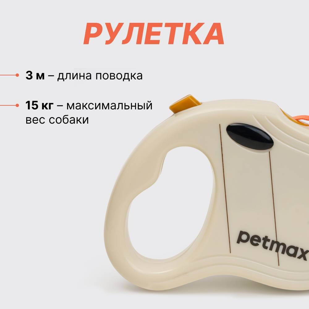 Ленточная рулетка от бренда Petmax подойдет для комфортных ежедневных прогулок с собакой.