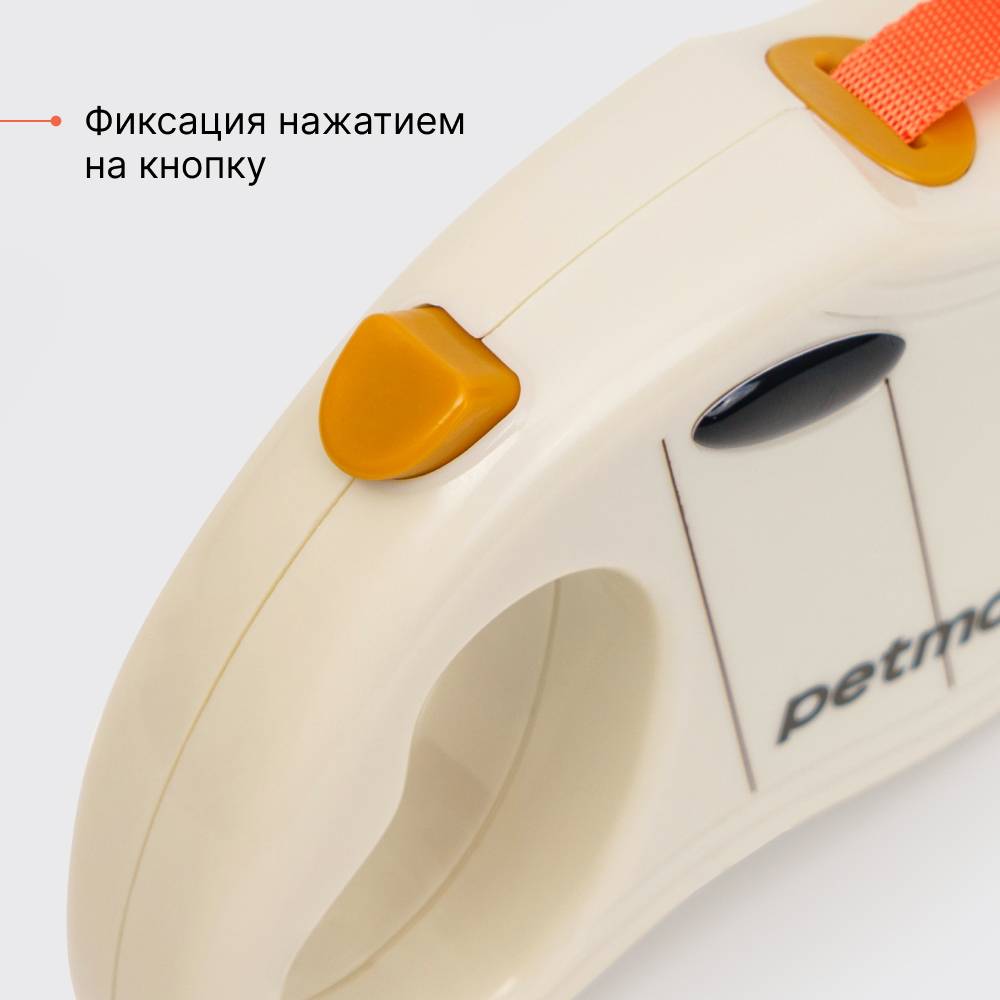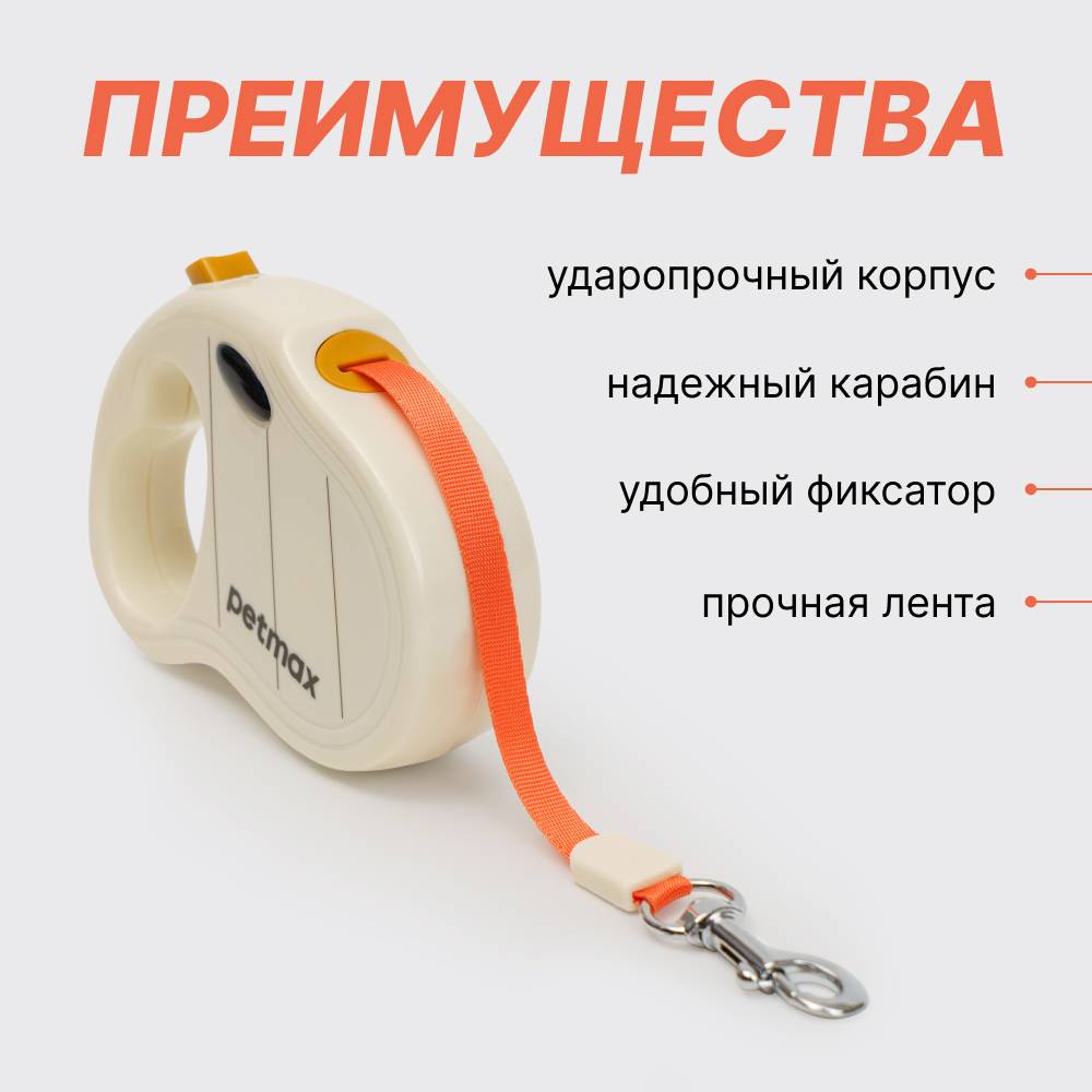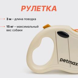 Petmax Рулетка для собак, XS, до 15 кг, ремень 3 м, оранжево-белый