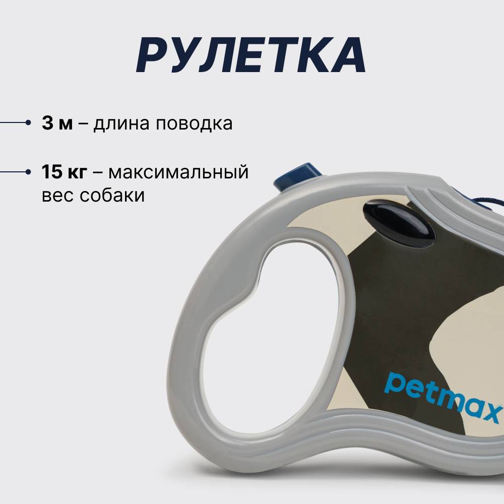 Ленточная рулетка от бренда Petmax подойдет для комфортных ежедневных прогулок с собакой.