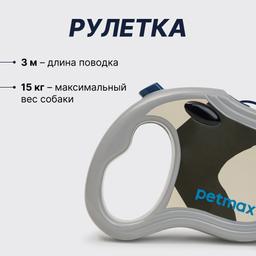 Petmax Рулетка для собак, XS, до 15 кг, ремень 3 м, черно-серый