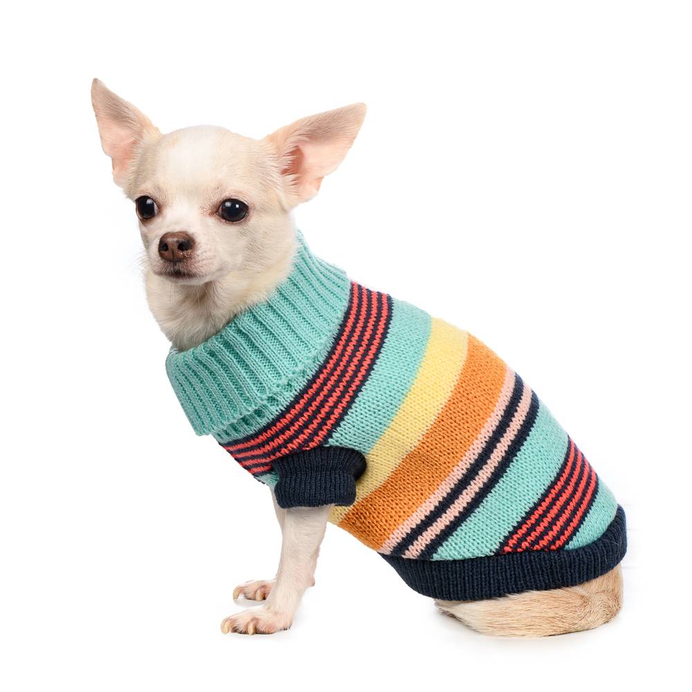 Свитер для собак в полоску голубого цвета от бренда Petmax. Одежда для собак от Petmax - это качественные, модные изделия, которые подойдут любой собаке.