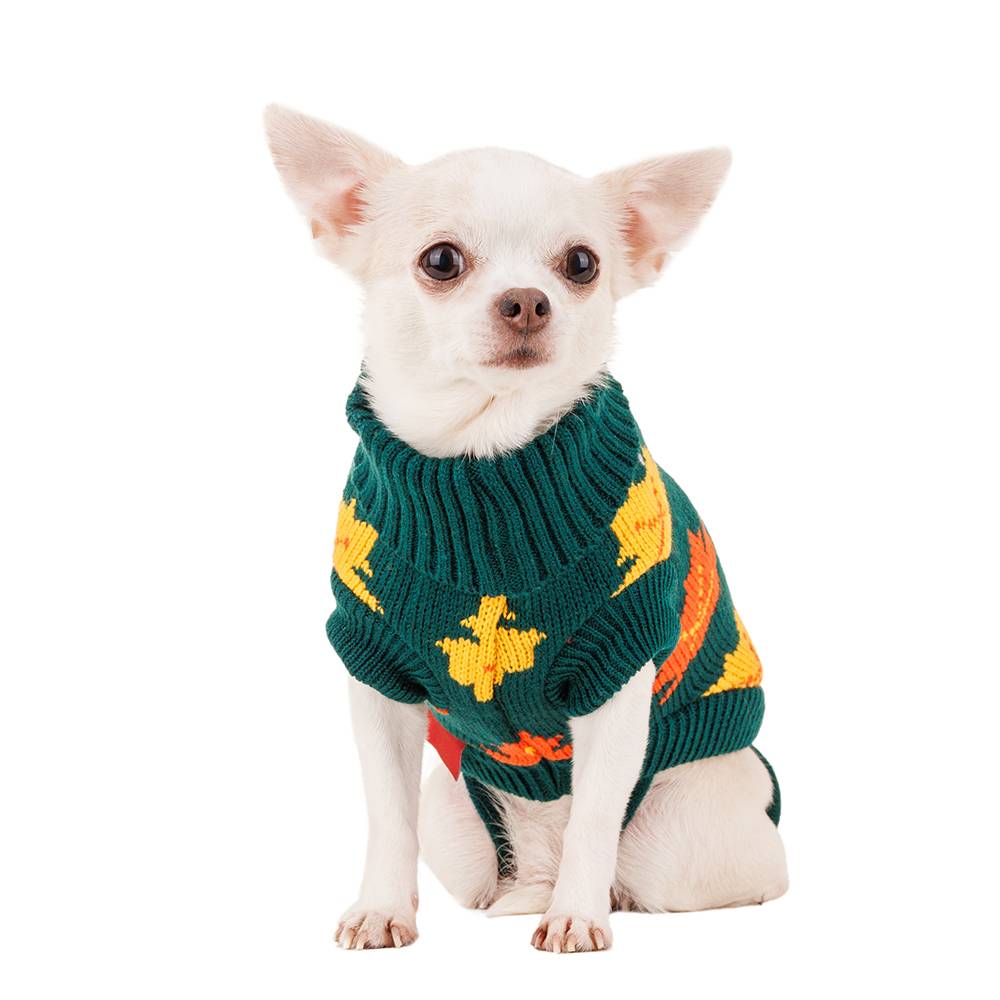 Стильный и теплый зеленый свитер с листьями для питомцев.