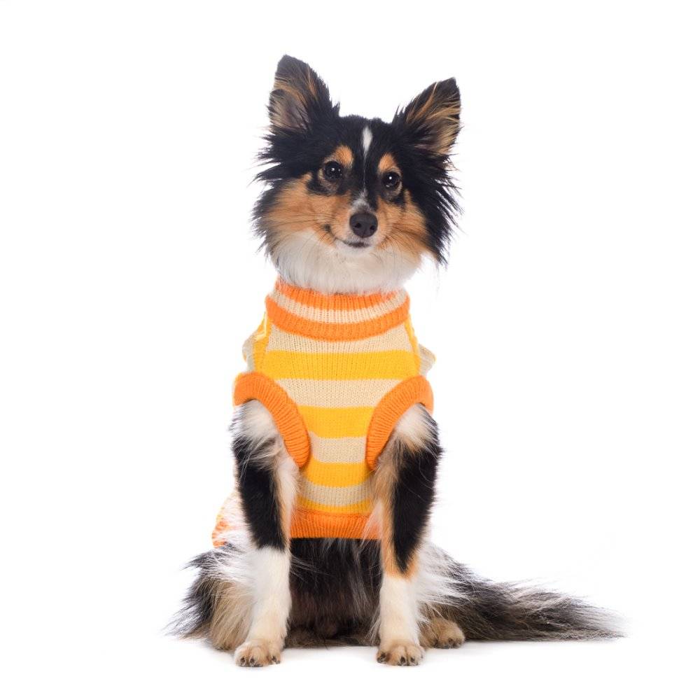 Свитер рассчитан на осеннюю погоду или ношение в прохладных помещениях. В этом стильном желтом свитере в полосочку ваш пушистый модник сразу привлечёт к себе взгляды прохожих. Одевайте свитер для прогулки в парке или на праздник. Устройте фотосессию и сделайте снимок счастливых моментов вместе со своим питомцем.