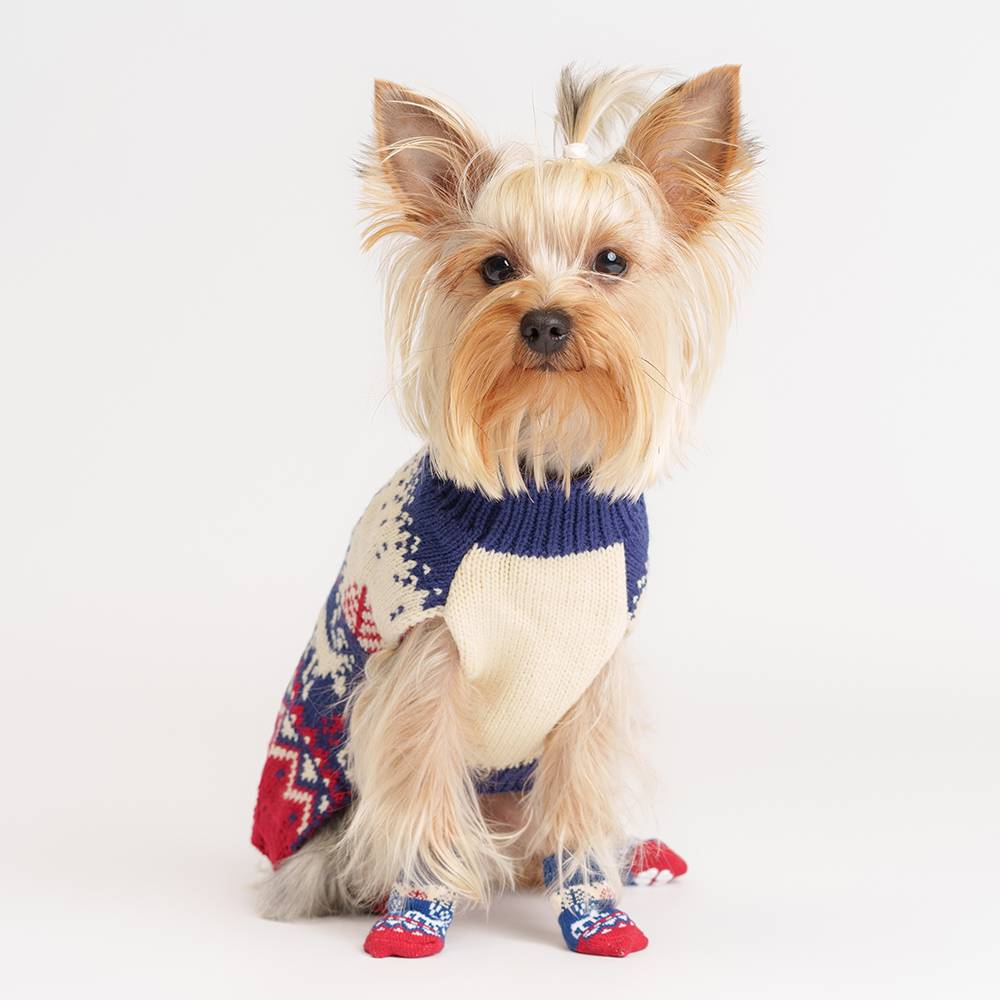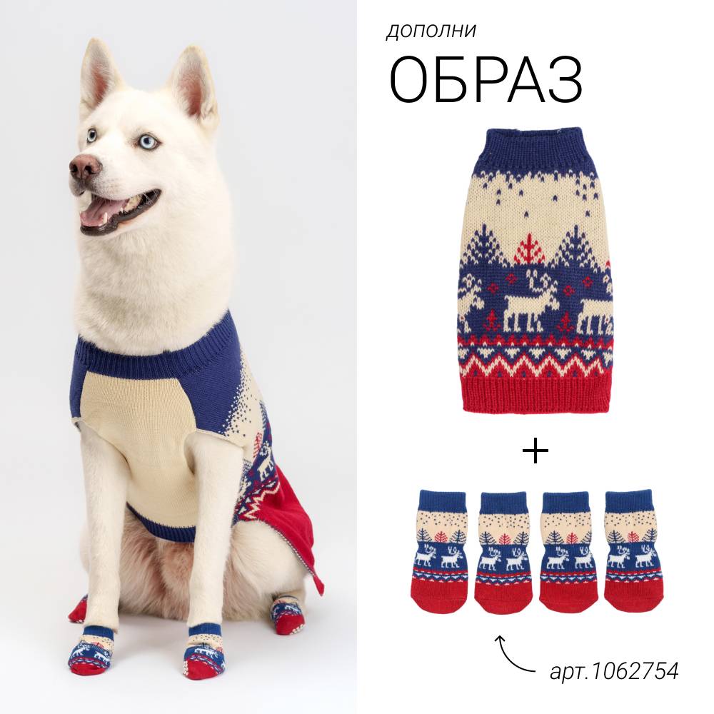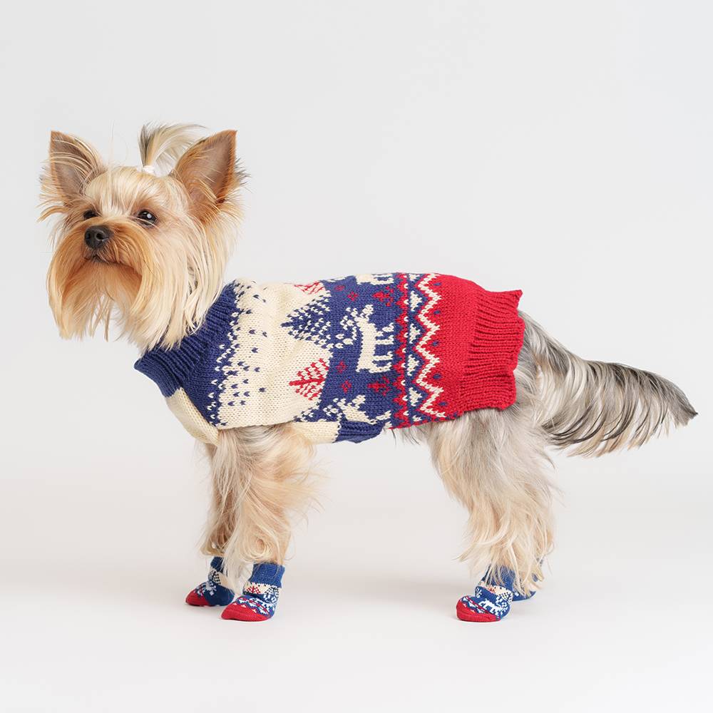 Подберите яркий образ – свитер сочетается с носочками Petmax с оленями.