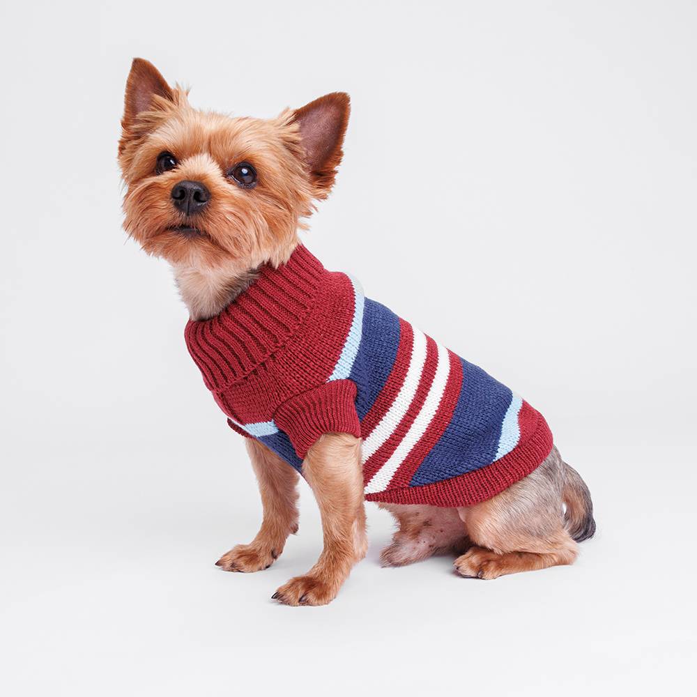 Petmax Свитер полосатый для кошек и собак, XS, бордовый