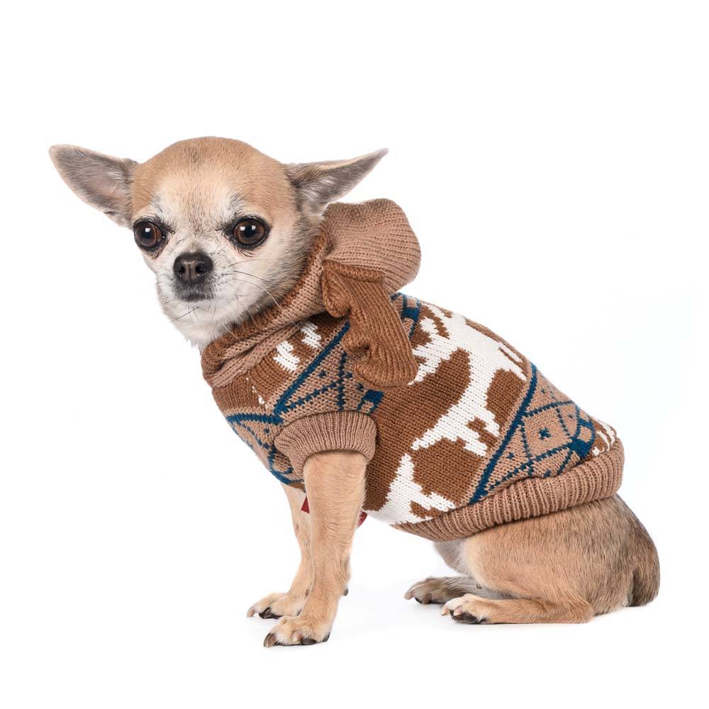 Petmax Свитер с оленьими рогами с капюшоном для кошек и собак, XS, бежевый (унисекс)