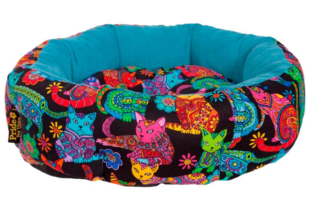 Прайд Ватрушка Крейзи Кэт 45 см - это плотная набивная лежанка для кошек и собак . Любому домашнему животному необходимо собственное место для отдыха, при это важно выбирать качественное изделие, которое понравится вашему питомцу, благодаря удобной форме и мягкости. Модный лежак из качественного и яркого полиэстра с рисунком прост в уходе, ткань обивки легко очищается при обычной сухой чистке или с использованием специальных средств.