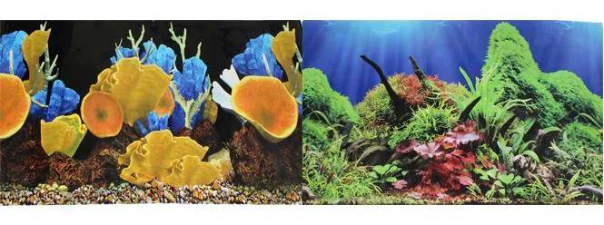 Фон для аквариума двухсторонний Морские кораллы/Подводный мир 50х100 см - декоративная пленка, которая предназначена для крепления к задней стенке аквариума. При помощи фона можно сделать дизайн аквариума более интересным и объемным, при этом не понадобится тратить значительные средства. Благодаря двухстороннему фону можно менять фон, оживляя интерьер аквариума.