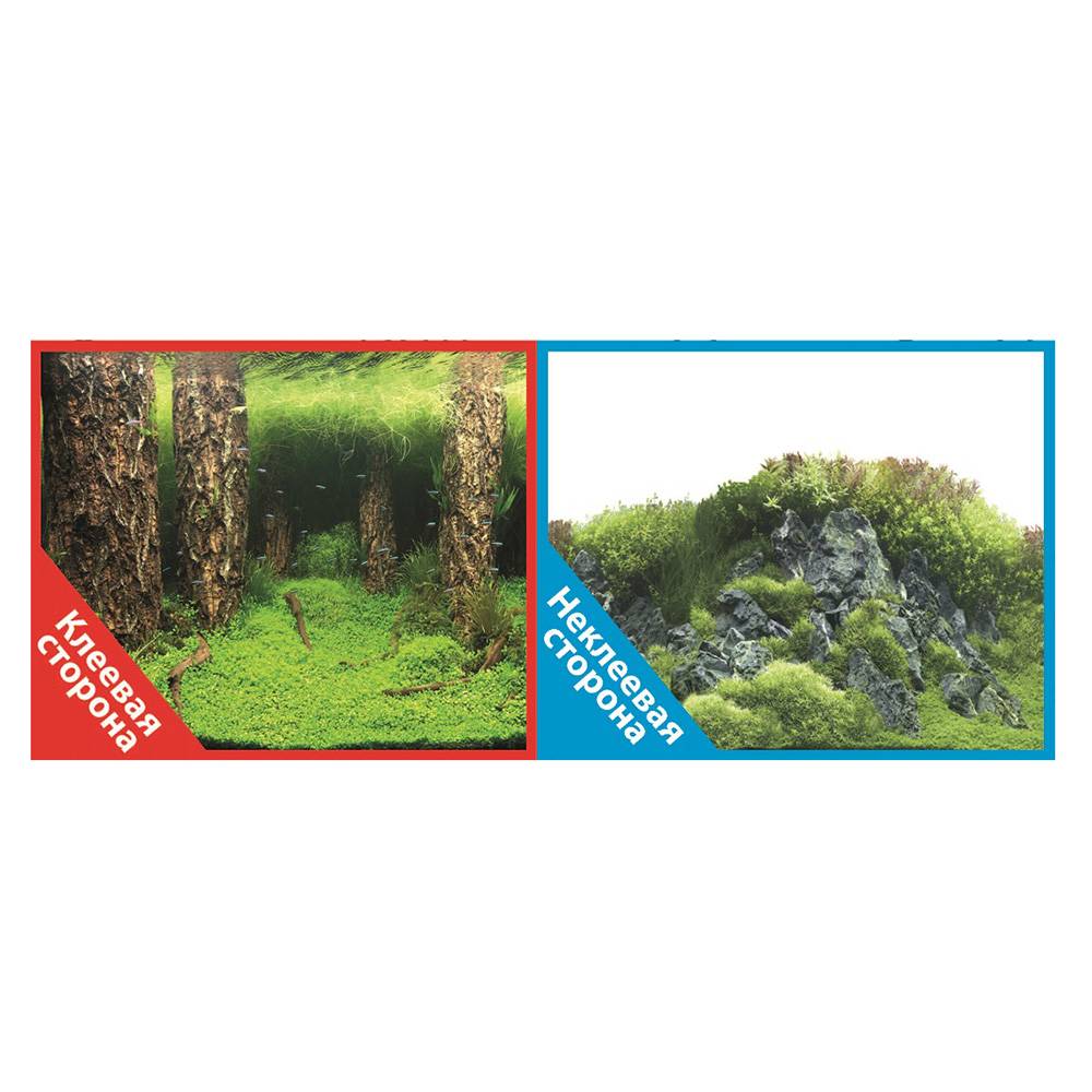 Фон двухсторонний 9086+/9087, 30x60см с одной самоклеящейся стороной Затопленный лес/Камни с растениями