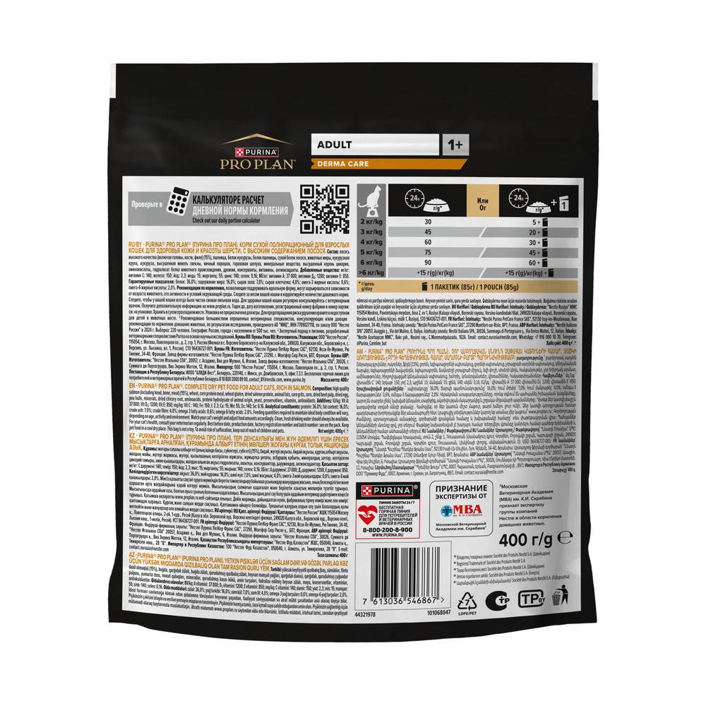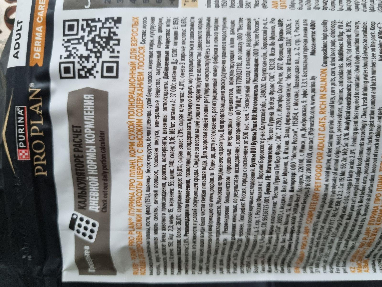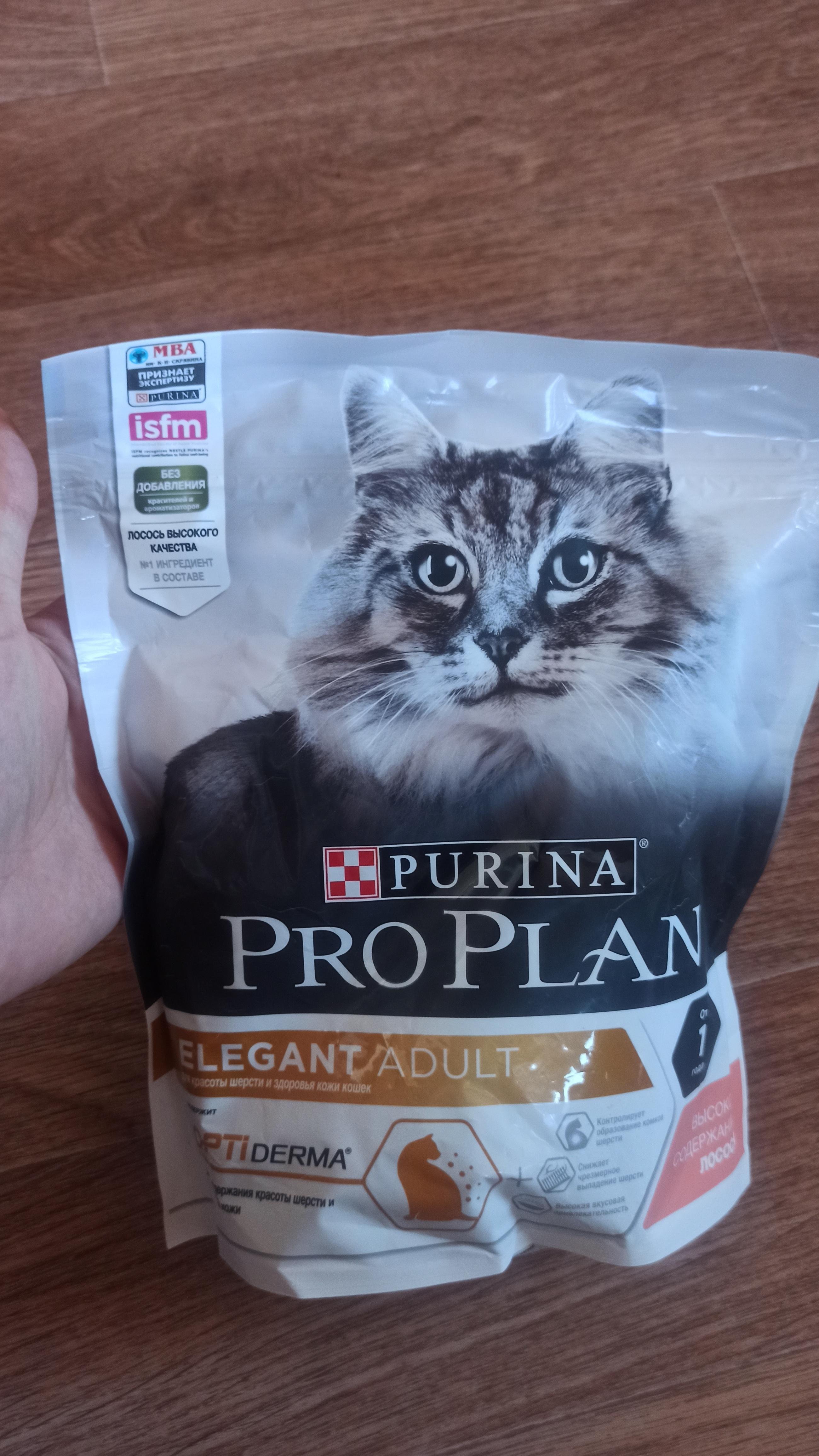 Перешли на этот корм, так как кошка длиношёрстная и начались проблемы с образованием комков шерсти в желудке. Ветврач посоветовала корм, в составе которого сырой клетчатки больше 5%. В описании была заявлена сырая клетчатка 5,5%. Так как кошка на рационе ProPlan, решила купить. Да и корм способствует уменьшению образования комков шерсти! В результате оказалось, что состав изменился и клетчатки 4%.Комментарий