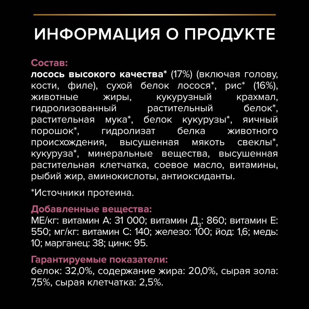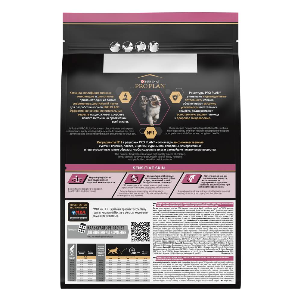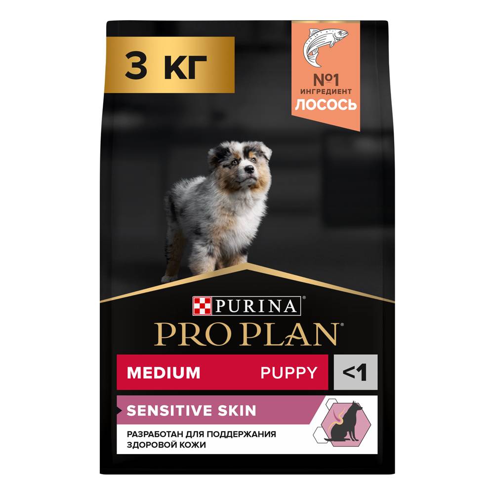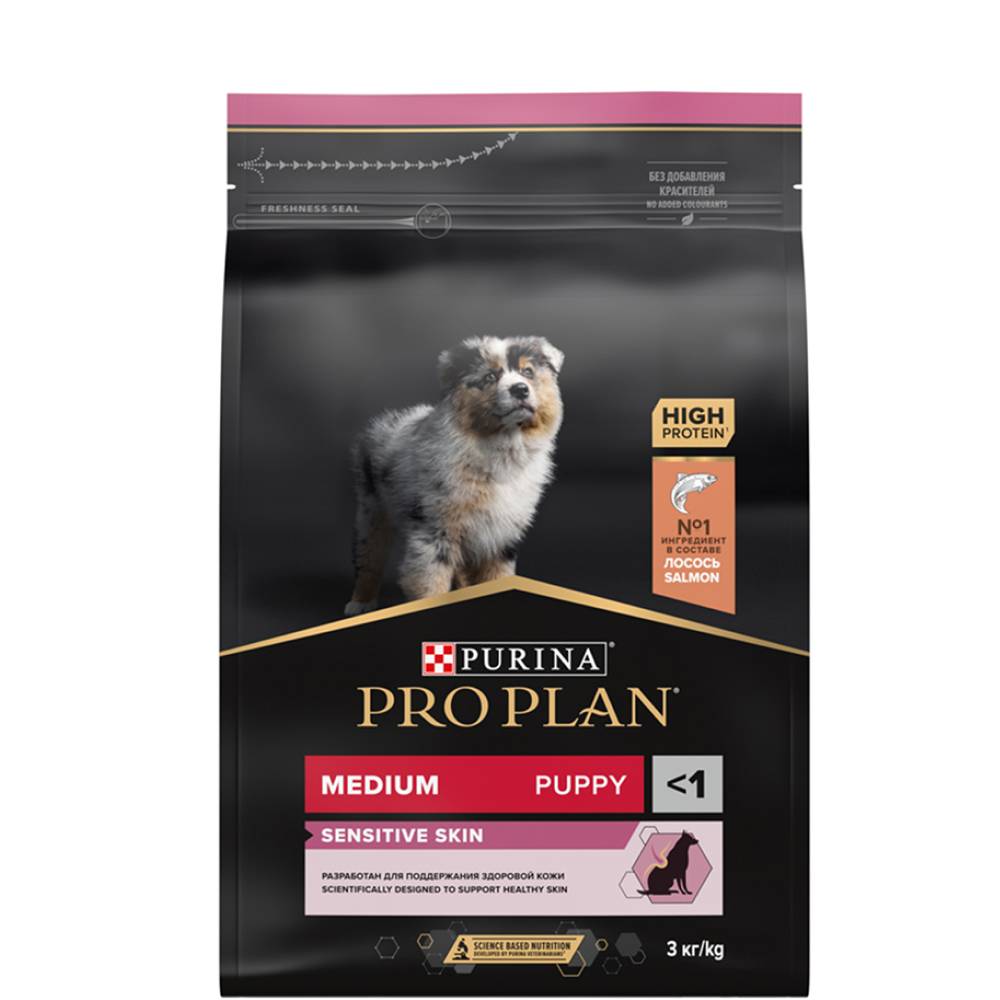 Изучая потребности щенков на протяжении многих лет, команда квалифицированных ветеринарных специалистов и диетологов PURINA разработала сухой корм PRO PLAN® Sensitive skin (для чувствительной кожи) — ежедневный рацион с высоким содержанием лосося для щенков средних пород. Этот полнорационный корм сбалансирован по составу и помогает поддерживать здоровье чувствительной кожи.