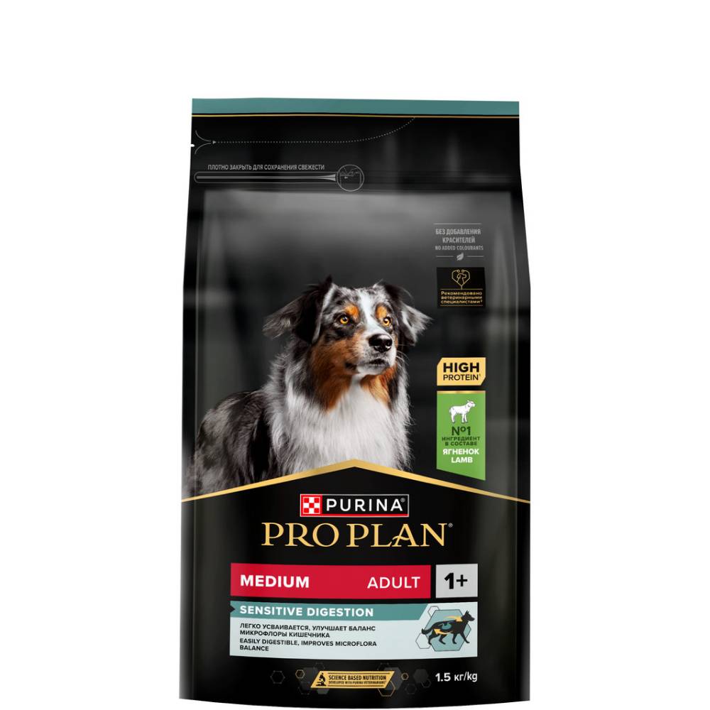 PRO PLAN® Sensitive Digestion Сухой корм для взрослых собак средних пород с чувствительным пищеварением, с ягненком, 1,5 кг