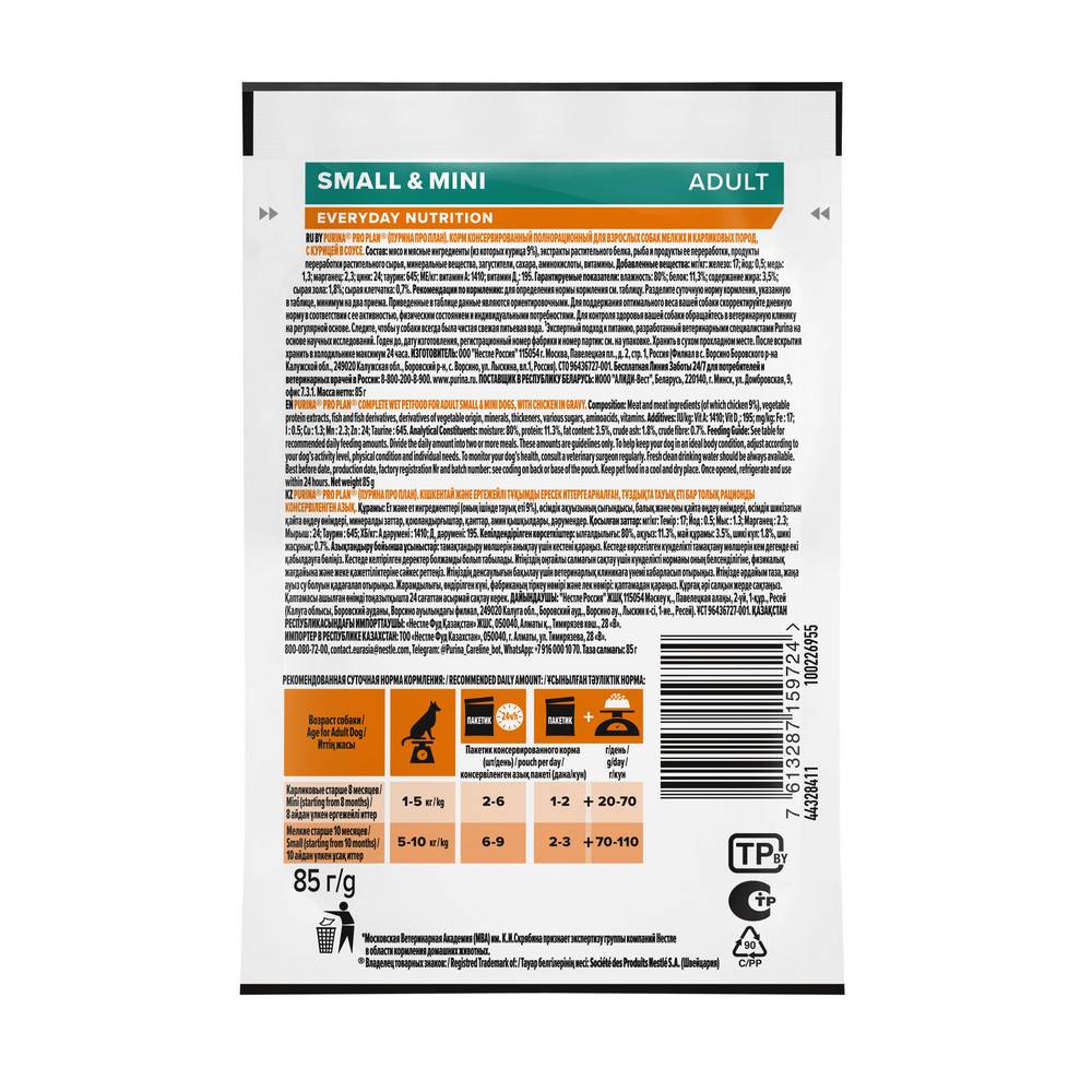 PRO PLAN® ProPlan Влажный корм (пауч) для взрослых собак мелких и карликовых пород, с курицей в соусе, 85 гр.