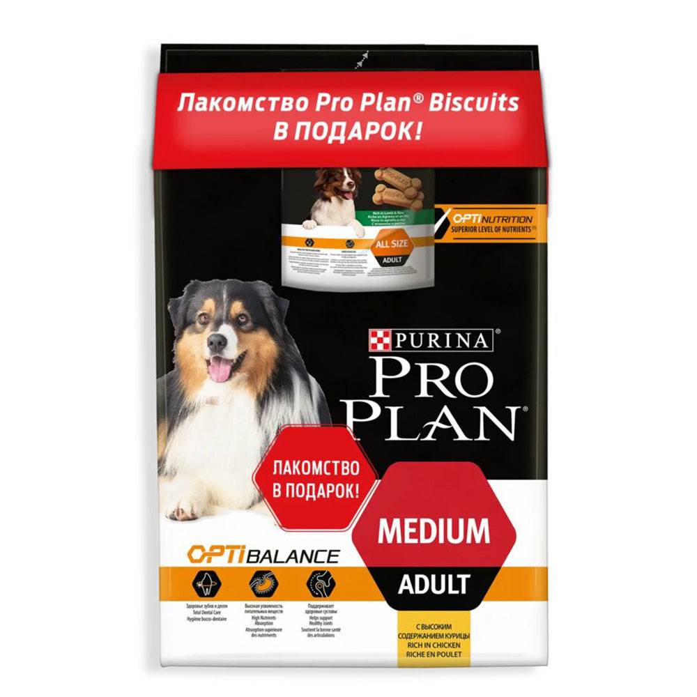PRO PLAN® ProPlan Промопак: Сухой корм для взрослых собак средних пород, с высоким содержанием курицы, 1,5 кг + Лакомство Biscuits для взрослых собак всех пород, с ягненком и рисом, 175 г