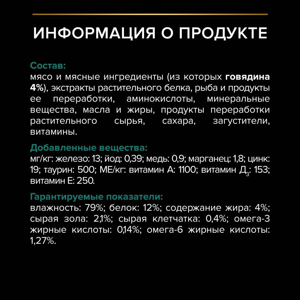 Команда квалифицированных ветеринарных специалистов разработала влажный корм для кошек PRO PLAN® MAINTENANCE с говядиной. Этот полнорационный корм для кошек содержит комплекс питательных веществ, витаминов и минералов, необходимых для нормального функционирования организма взрослых питомцев.
