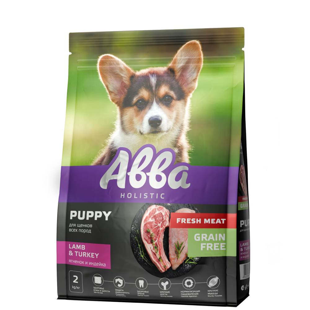 АВВА Holistic Fresh Meat Сухой корм беззерновой для щенков всех пород, с ягненком и индейкой, 2 кг