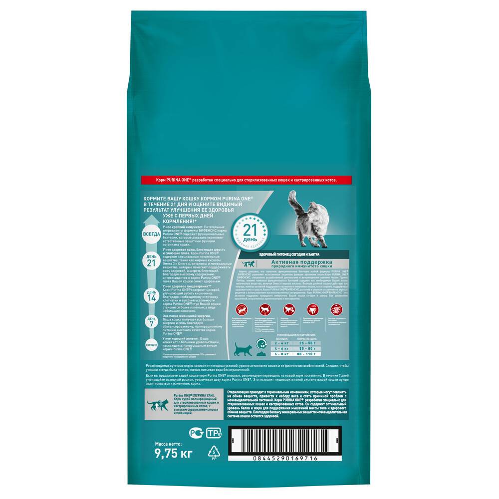 Корм для кошек Purina ONE® (ПУРИНА УАН) — полнорационный корм, разработанный ветеринарами и диетологами Purina специально для стерилизованных кошек и кастрированных котов старше 1 года.