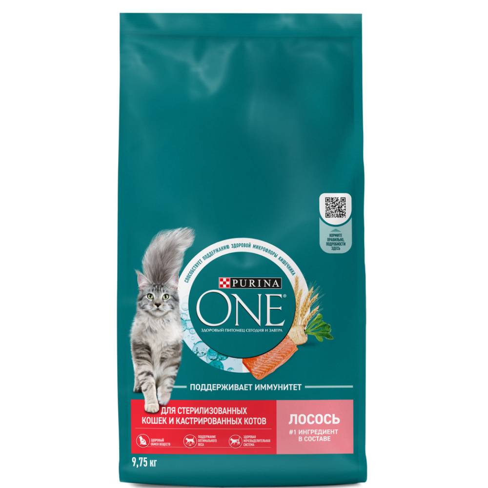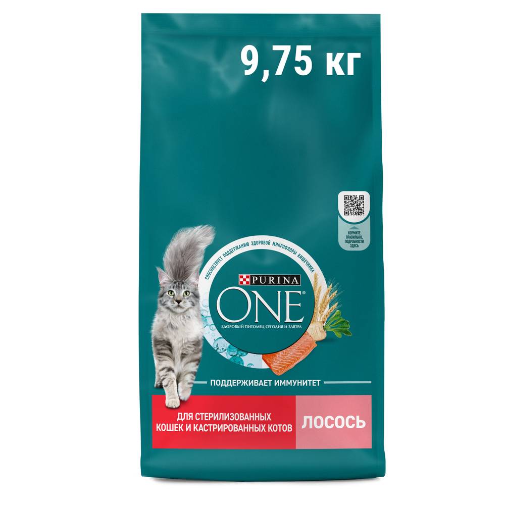 Корм Purina ONE® с лососем для стерилизованных кошек в выгодной* упаковке 9,75 кг — это: