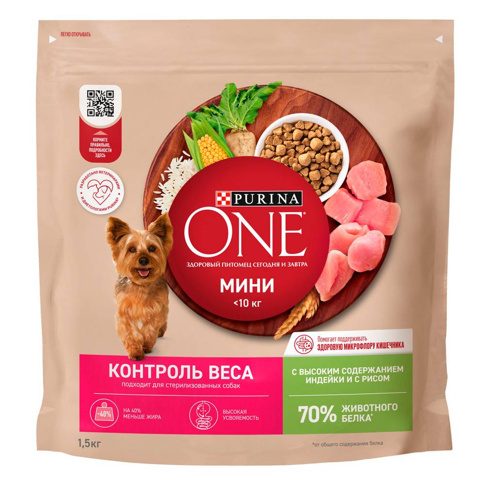 Сухой корм для собак мелких пород Purina ONE® с высоким содержанием индейки и с рисом 1.5кг — это: