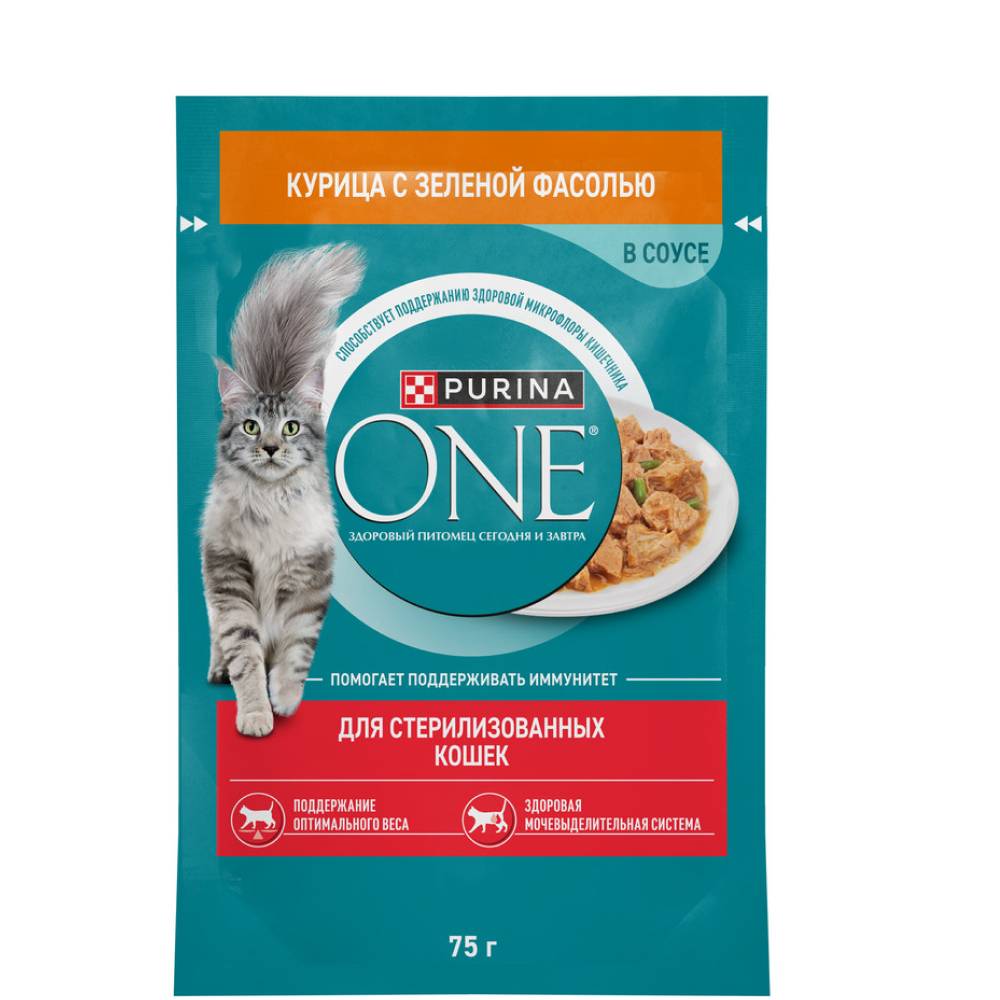 Стерилизованным и кастрированным кошкам и котам необходим специальный корм, который помогает поддерживать здоровье.Этот влажный корм от Purina One с курицей и фасолью отлично справляется со своими задачами.Комментарий