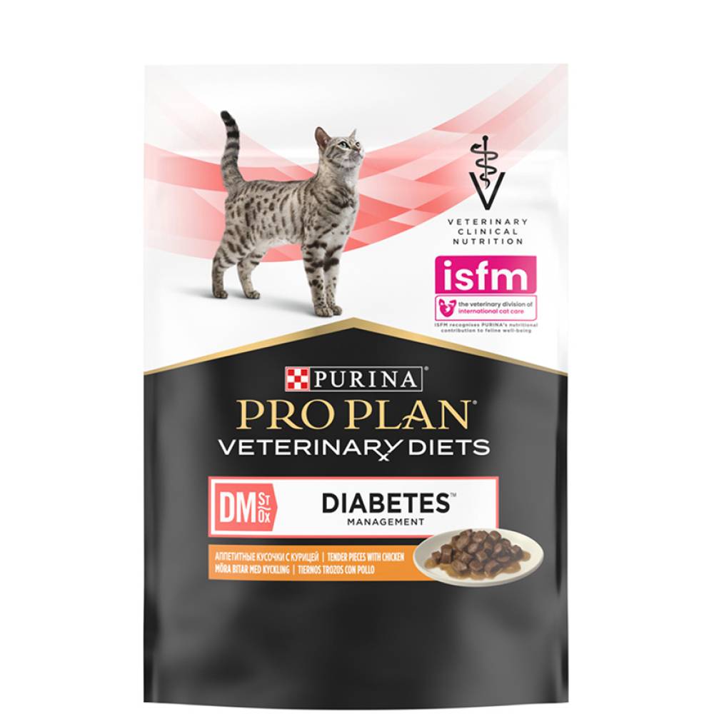 Корм влажный полнорационный диетический PURINA® PRO PLAN® VETERINARY DIETS для взрослых кошек DM St/Ox при диабете. Корм рекомендуется для регуляции поступления глюкозы в кровь при сахарном диабете, так как содержит низкий уровень «быстрых» углеводов.