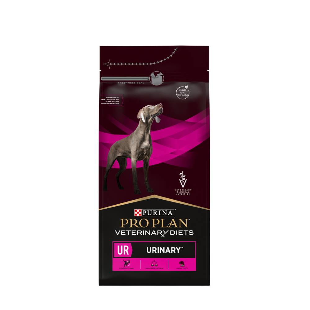 Корм сухой полнорационный диетический PRO PLAN® Veterinary Diets UR Urinary (Уринари) для взрослых собак для растворения струвитных камней, со свойствами подкисления мочи и низким содержанием магния. Подходит для собак всех пород. Использование данного корма рекомендовано под наблюдением ветеринарного врача.