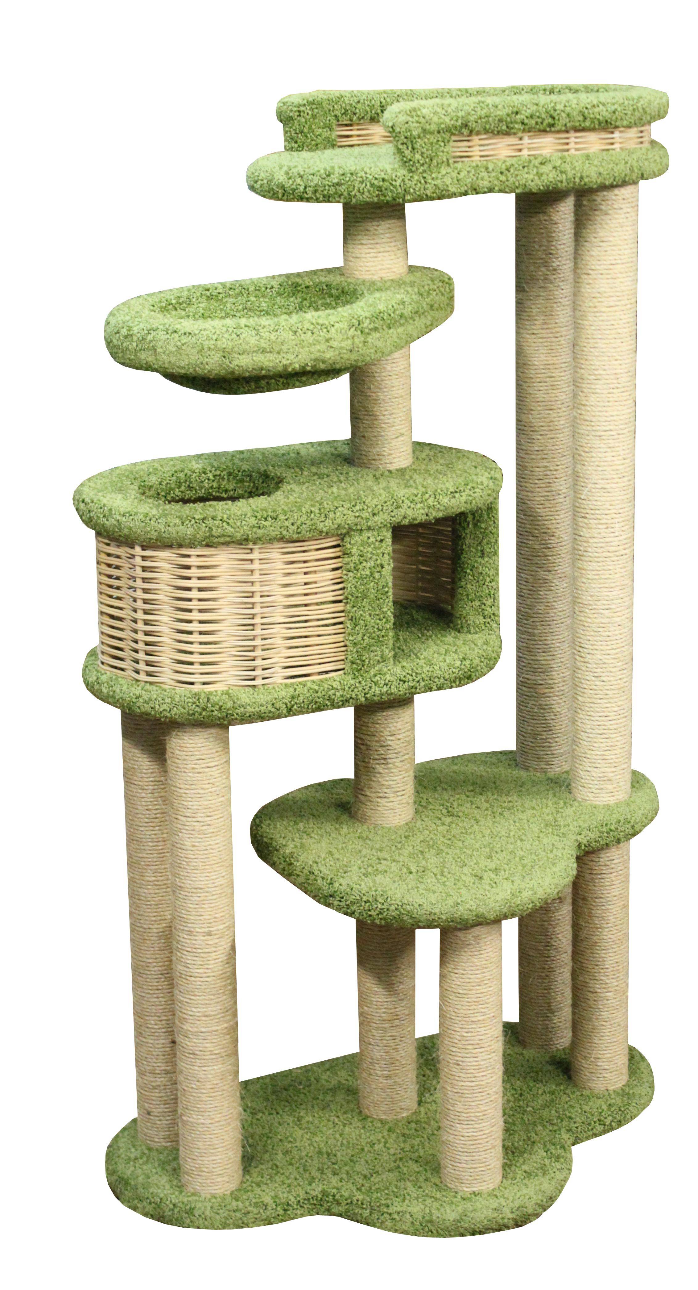 Пушок Спально-игровой комплекс для кошек с домиком и когтеточкой Басик+ многоярусный с площадками, лежаками и гамаком, зеленый, 60х100х170 см