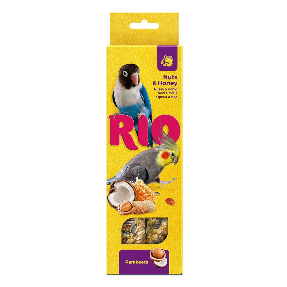 - Палочки с орехами и медом– прекрасное лакомство для неразлучников, корелл, каиков, пиррур и других средних попугаев.