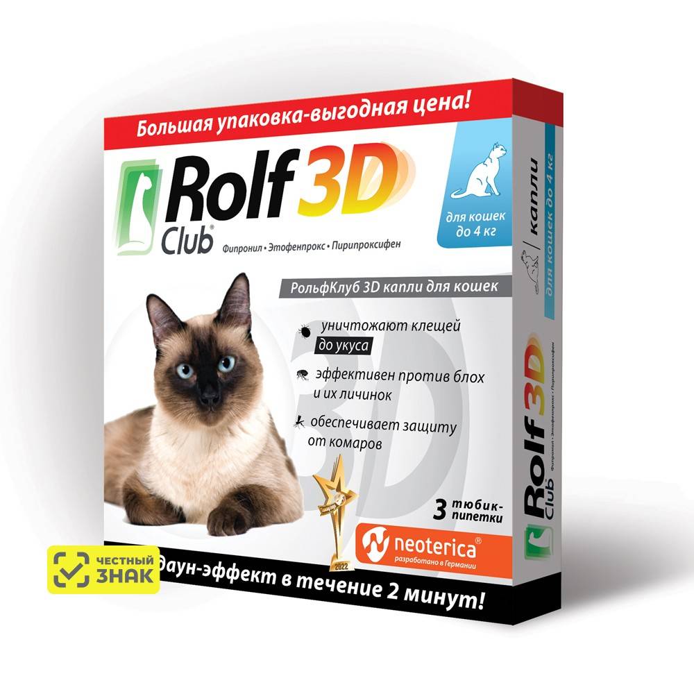 Капли на холку RolfClub 3D защищают кошек: