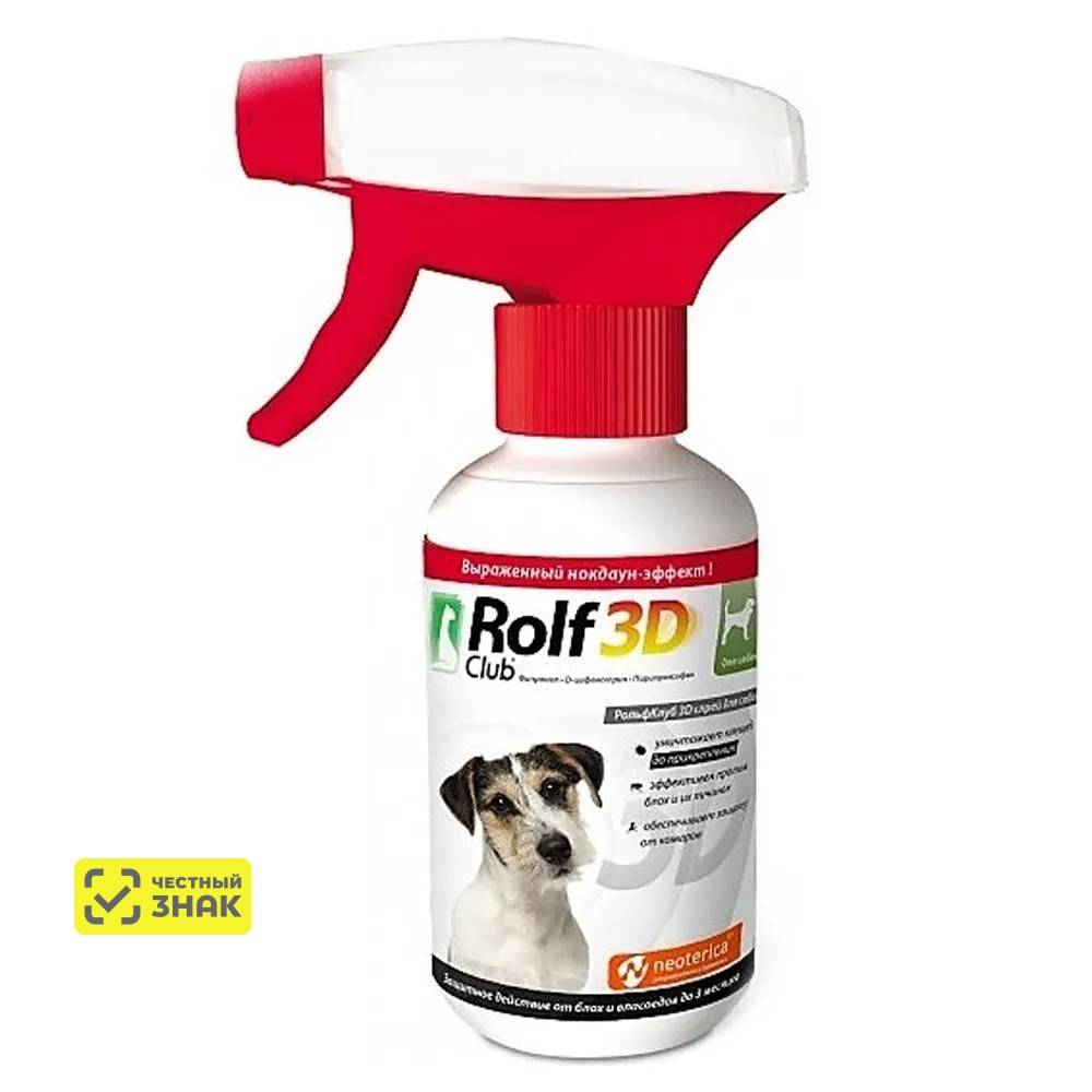- РольфКлуб 3D спрей для собак относится к комбинированным инсектоакарицидным лекарственным препаратам.