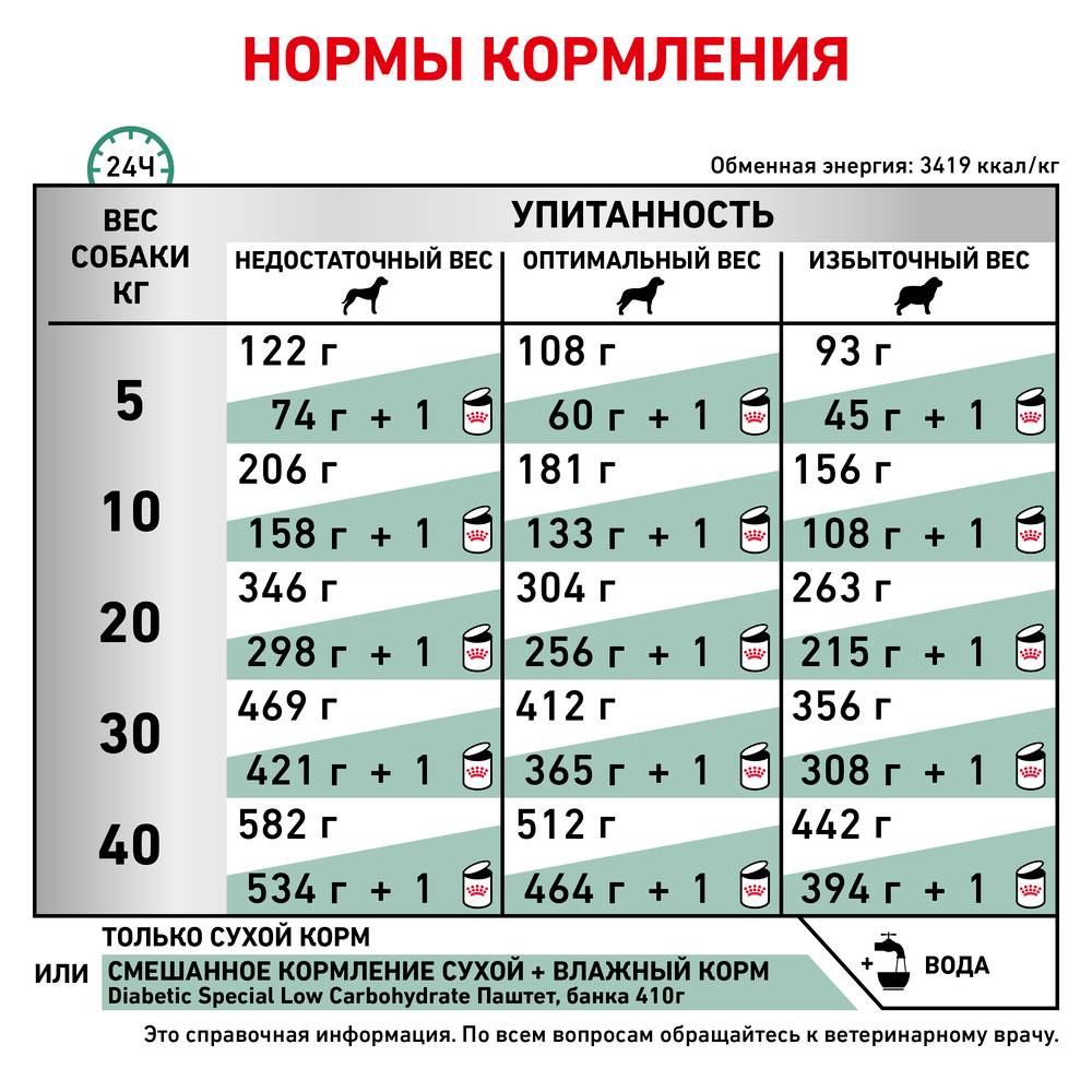 ВНИМАНИЕ: при назначении этого корма у собак значительно повышается чувствительность к инсулину. В начале применения диеты рекомендуется контролировать уровень гликемии для уточнения дозы инсулина.