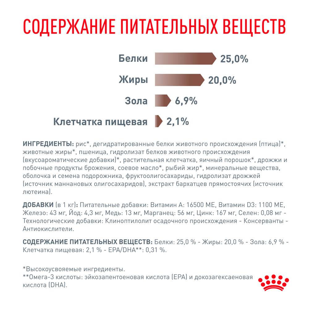 - Высокое содержание энергии. Высокое содержание энергии помогает уменьшить объем порции и снизить нагрузку на пищеварительную систему.