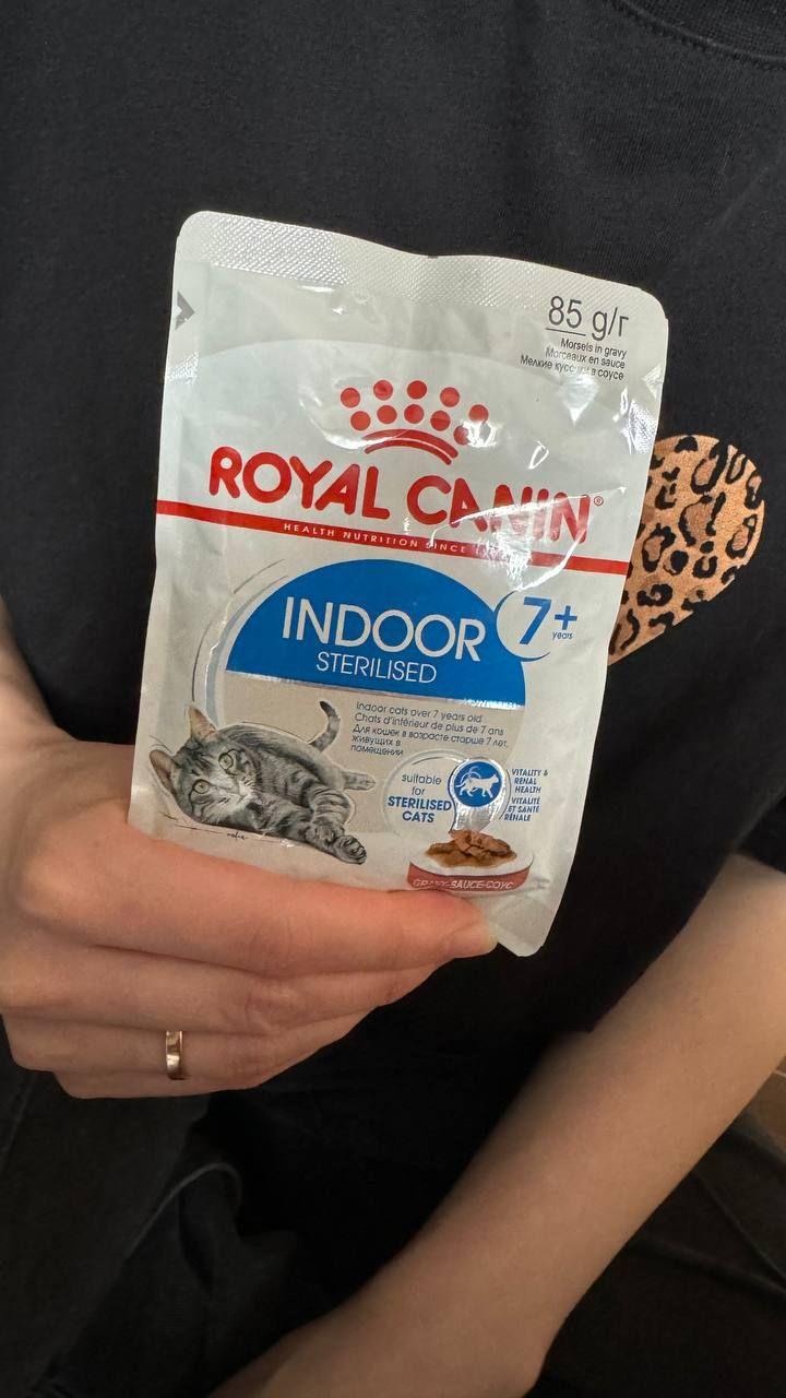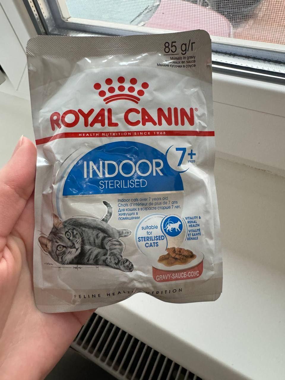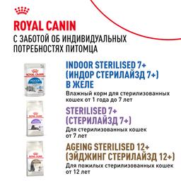 Корм консервированный полнорационный для кошек (в возрасте от 7 до 12 лет), живущих в помещении INDOOR STERILISED 7+ (Индор стерилайзд 7+) ROYAL CANIN®, мелкие кусочки в соусе, подходящий для взрослых кастрированных и стерилизованных кошек, живущих в помещении , специально разработан с учетом потребностей вашей кошки в питательных веществах.