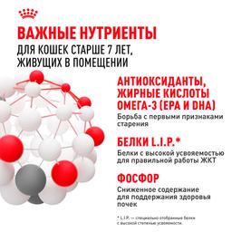 - ROYAL CANIN® INDOOR STERILISED 7+ (ИНДОР СТЕРИЛАЙЗД 7+) содержит жирные кислоты Омега-3 (ЭПК и ДГК) и комплекс антиоксидантов, в том числе витамины С, Е для поддержания здоровья и жизненной энергии кошек.