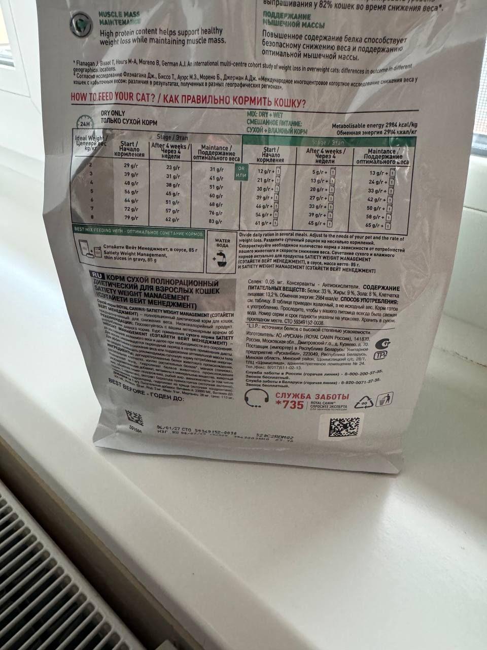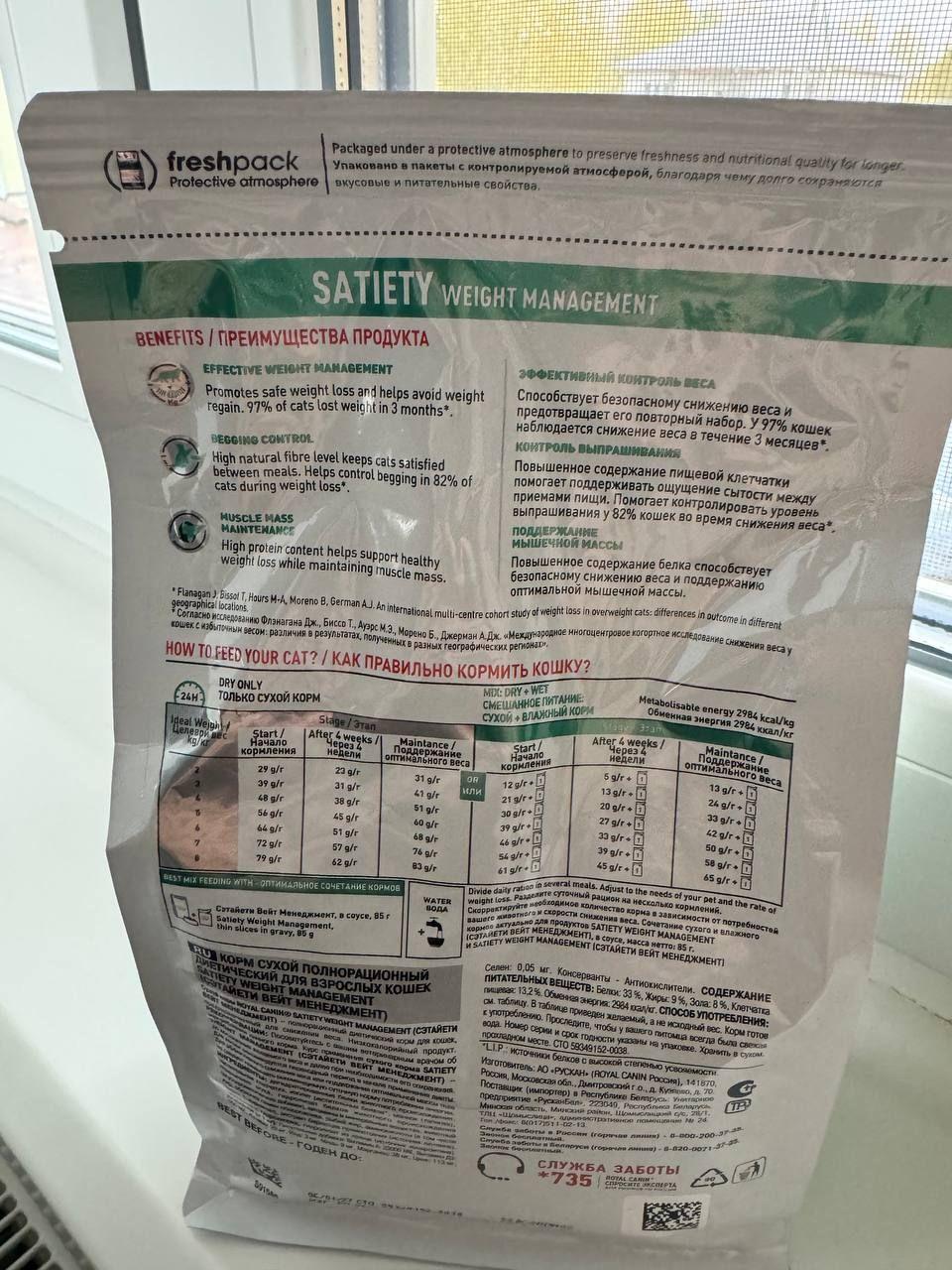 Сухой корм Royal Canin® Satiety Weight Management (Сэтайети Вейт Менеджмент) - полнорационный диетический корм для взрослых кошек, рекомендуемый для снижения веса. Рекомендуется для снижение веса и поддержания достигнутого результата. Высокое содержание клетчатки и высококачественного белка обеспечивает быстрое насыщение и длительное чувство сытости кошки.