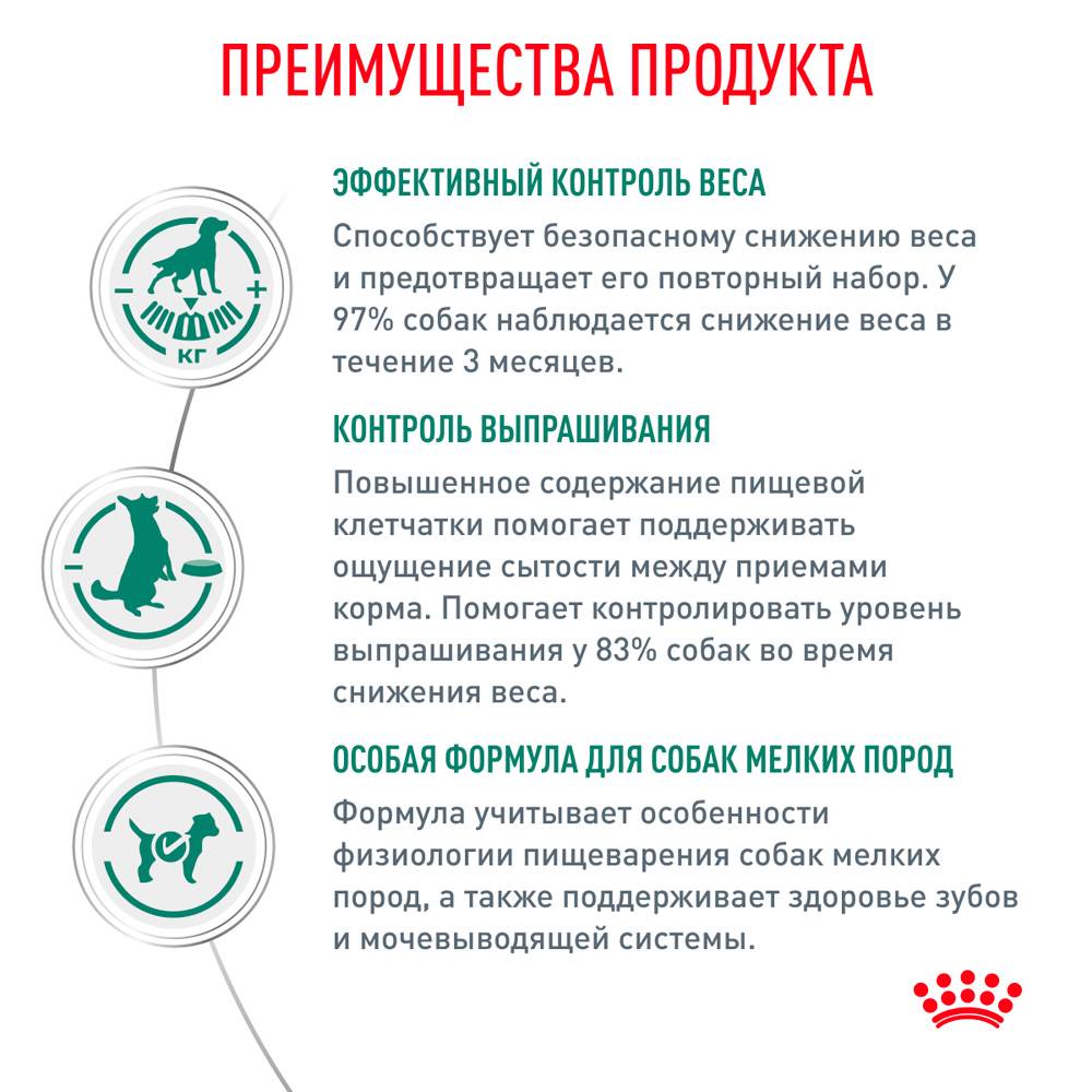 - Эффективный контроль веса. Способствует безопасному снижению веса и предотвращает его повторный набор. У 97% собак наблюдается снижение веса в течение 3 месяцев.