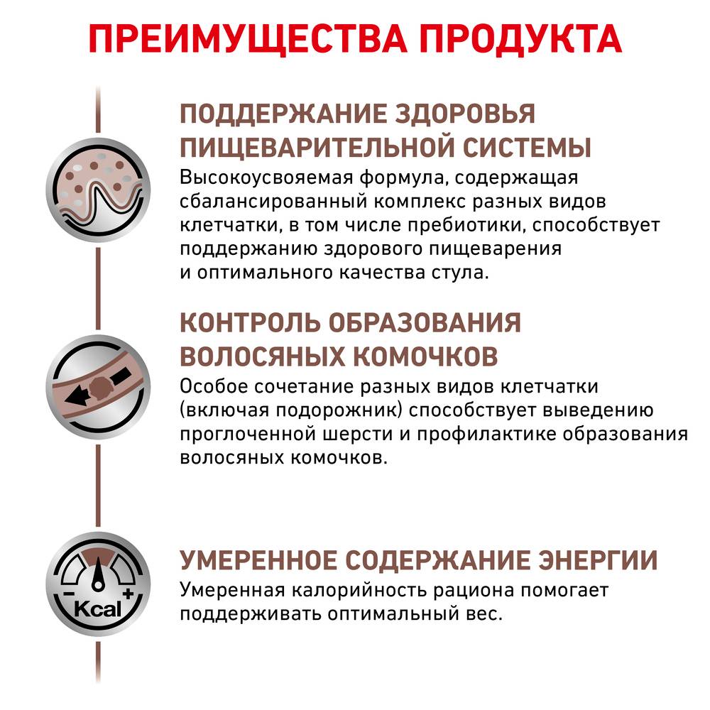 Полнорационный диетический сухой корм для взрослых кошек при нарушениях пищеварения, вызванного наличием волосяных комочков. Рекомендуемый при острых расстройствах пищеварения, в реабилитационный период и при истощении. Легкоусвояемые ингредиенты. Дополнительное количество электролитов и высокое содержание основных питательных веществ. Высокая калорийность.
