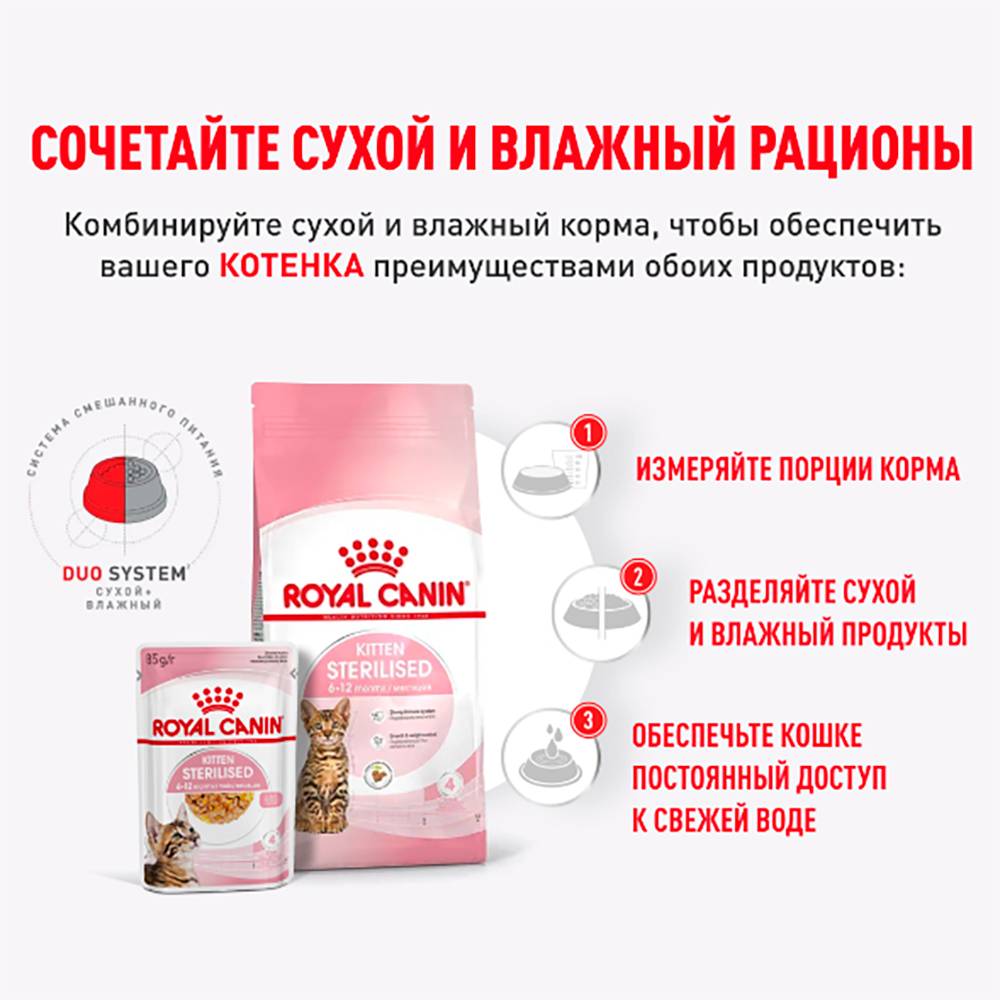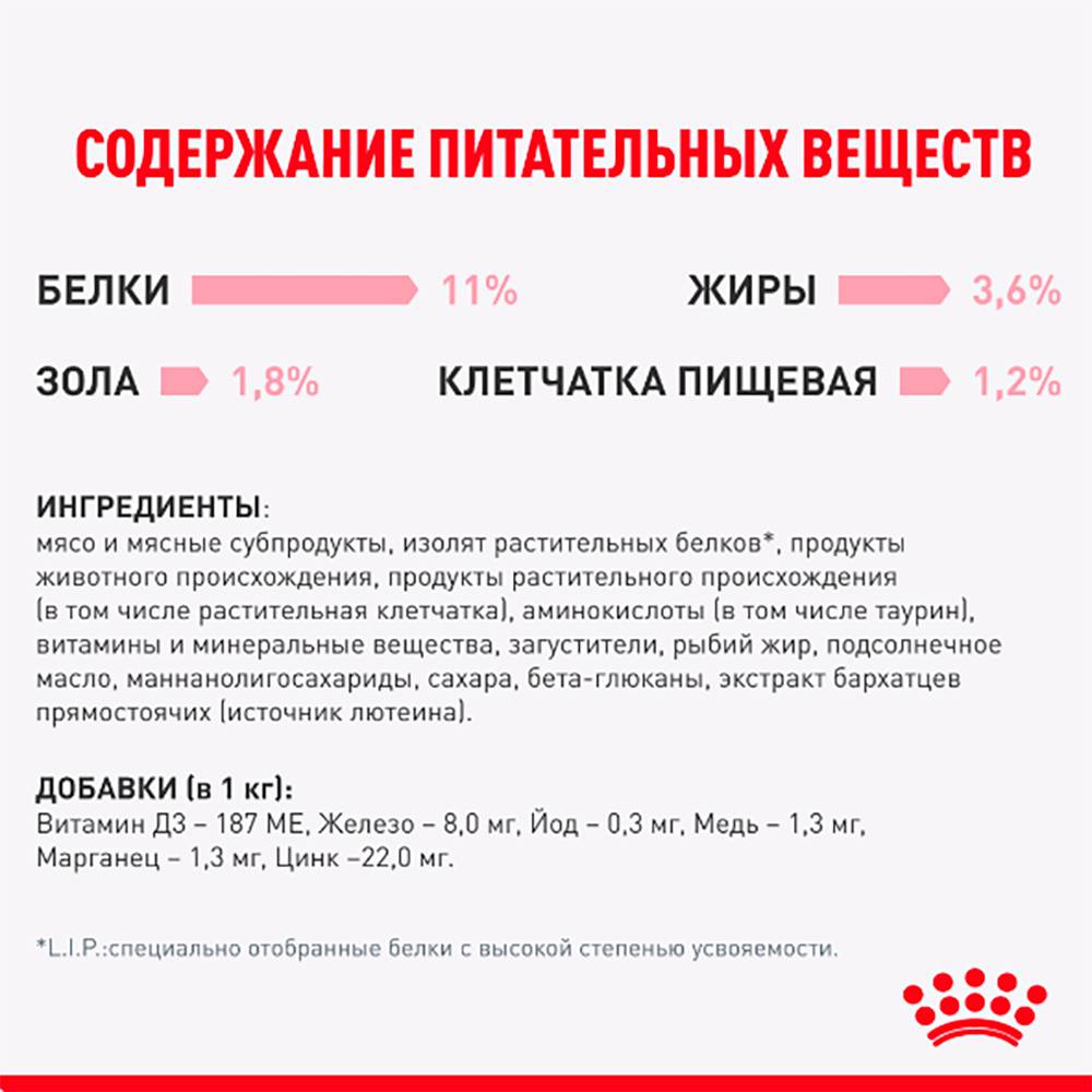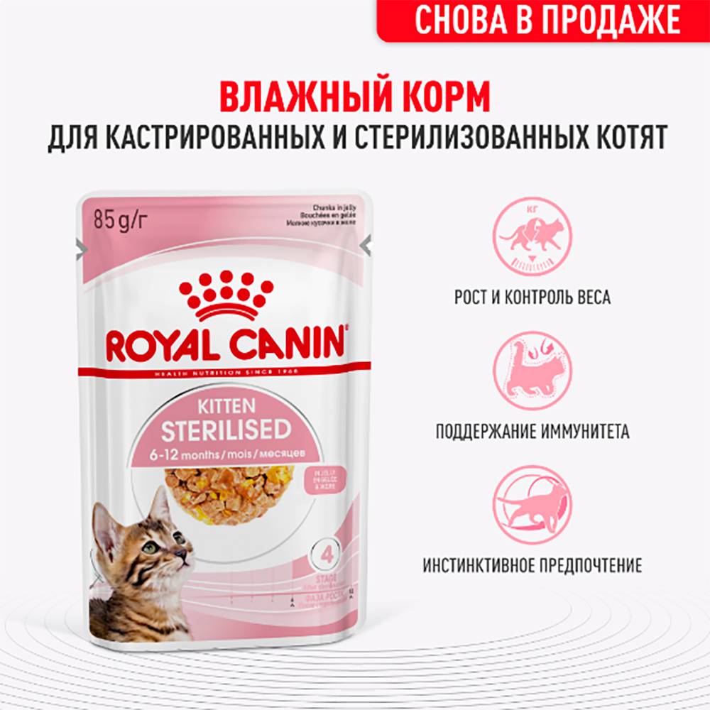 Киттен стерилайзд: влажный корм для стерилизованных котят в возрасте от 6 до 12 месяцев. Уже через 48 часов после стерилизации у кошки может существенно возрасти аппетит, что приведет к набору избыточного веса. Умеренная калорийность продукта Киттен стерилайзд позволяет избежать набора избыточного веса, а оптимальное количество белков и минеральных веществ поддерживает здоровый рост котенка. Проследите, чтобы у вашей кошки всегда была свежая вода. Номер серии и срок годности указаны на упаковке. Хранить в сухом, прохладном месте.