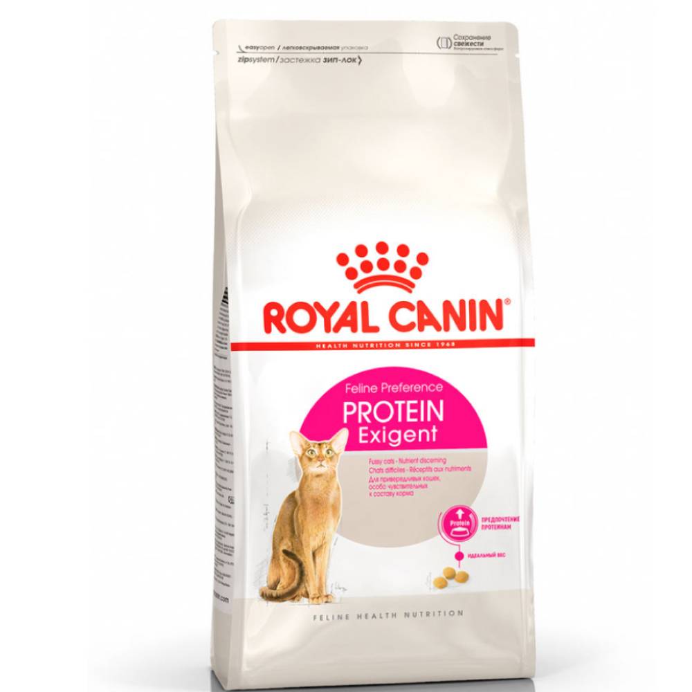 Royal Canin Protein Exigent сухой корм для кошек, привередливых к составу продукта. Наличие индивидуальных пищевых предпочтений означает, что каждая кошка по-своему интерпретирует аромат, текстуру, вкус корма и ощущения после его потребления. Каждый продукт семейства Exigent, помимо вкусовых качеств, обладает также рядом других оригинальных, специфических свойств.