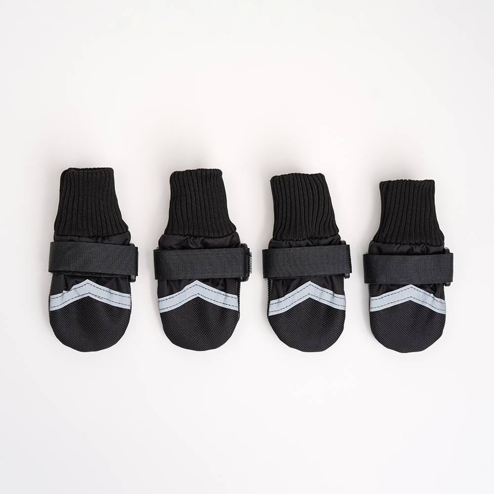 - Удобные застежки-липучки надежно фиксирует обувь на лапах.