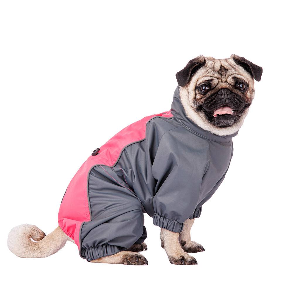 - Застежка-молния на спине, комбинезон полностью закрывает тело животного, защищая его от намокания и замерзания. Утягивающие резинки надежно фиксируют костюм на питомце.