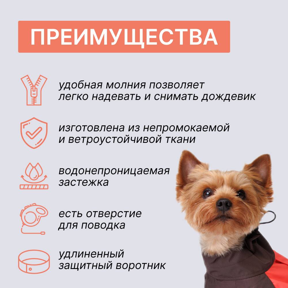 Дождевик от бренда RUNGO – эффективный способ сделать прогулку с питомцем комфортной в любую непогоду. Дождевик защитит Вашего четвероногого друга от сырости, загрязнений и переохлаждения.