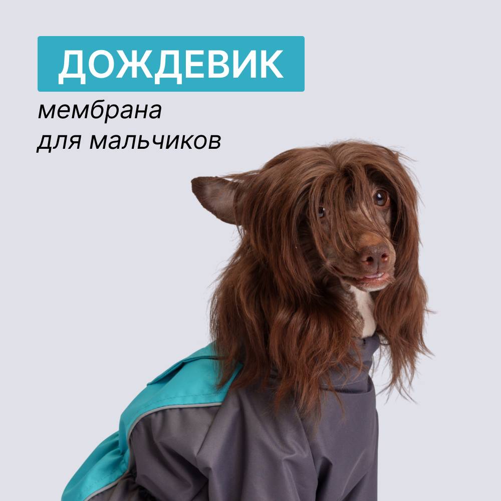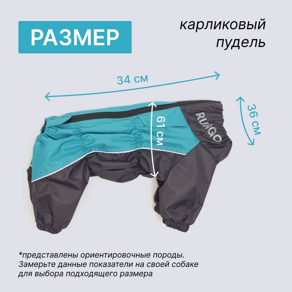 Rungo Дождевик для собак породы карликовый пудель, обхват шеи 36 см, обхват груди 61 см, длина спины 34 см, голубой (мальчик)
