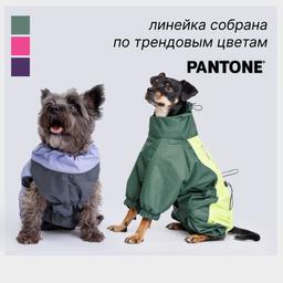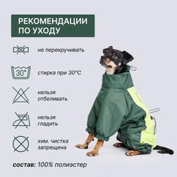 - Застежка-молния на спине, комбинезон полностью закрывает тело животного, защищая его от намокания и замерзания.