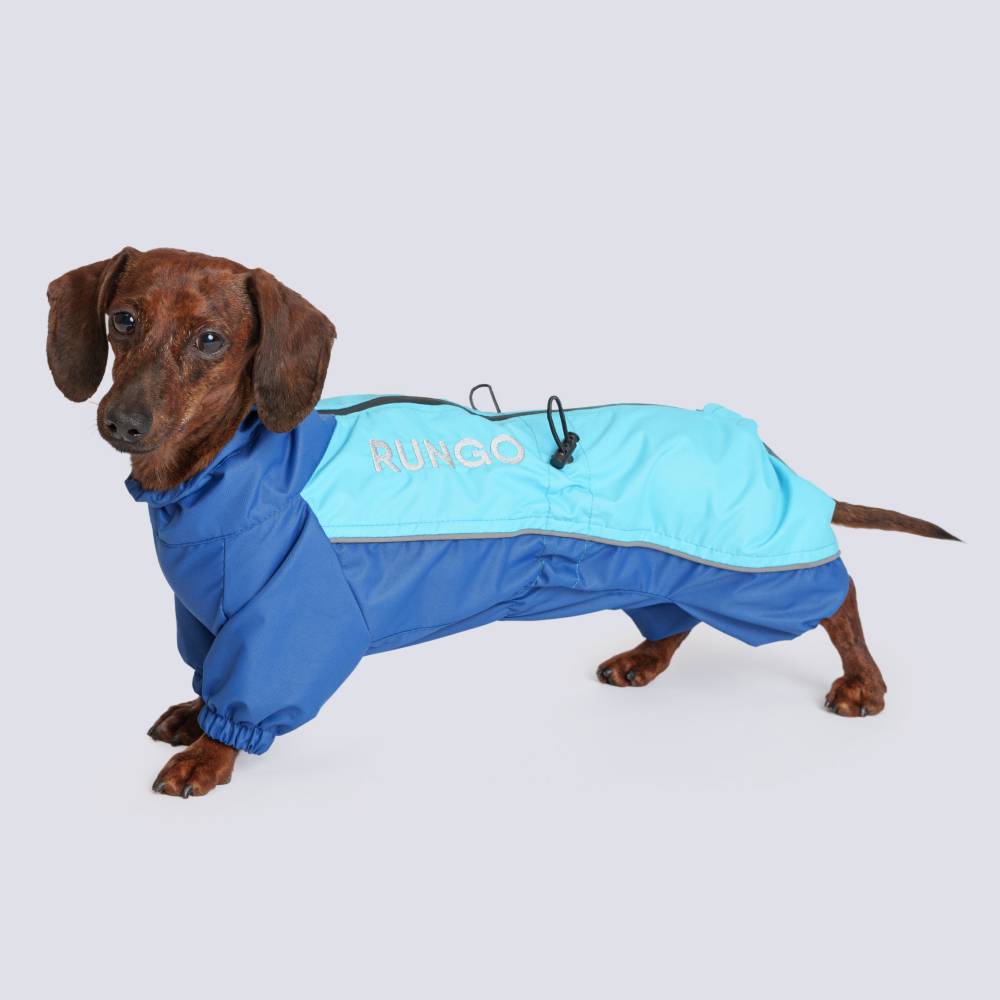 Rungo Дождевик для собак породы кроличья такса, обхват шеи 34 см, обхват груди 50 см, длина спины 28 см, голубой неон (мальчик)