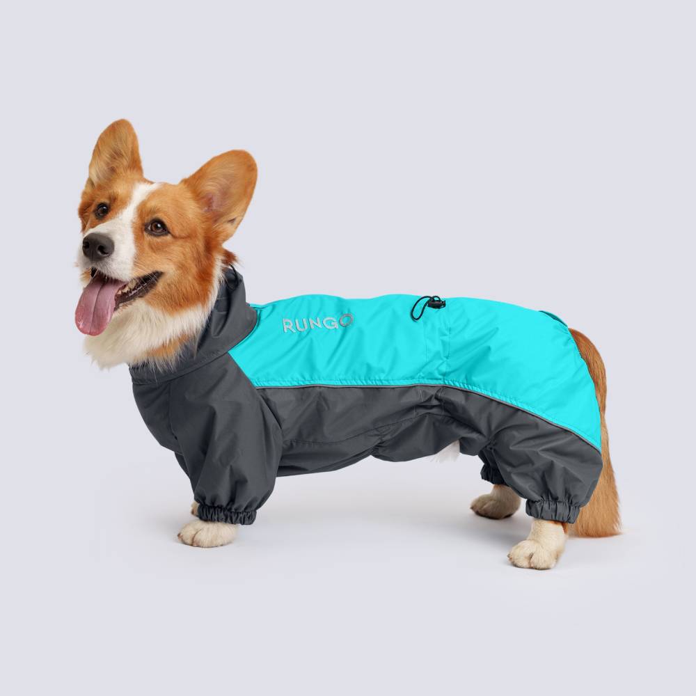 Rungo Дождевик для собак породы вельш-корги, обхват шеи 55 см, обхват груди 74 см, длина спины 44 см, аквамарин (мальчик)