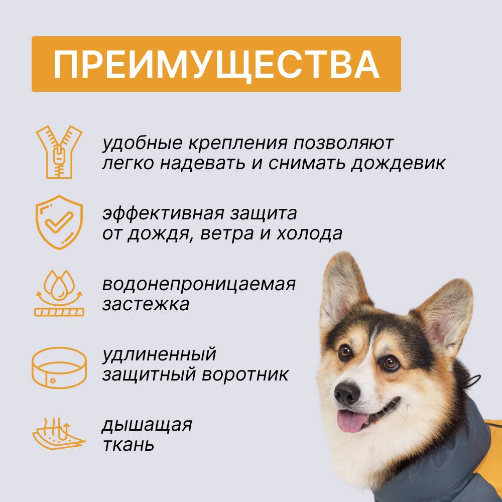 Дождевик от бренда RUNGO – эффективный способ сделать прогулку с питомцем комфортной в любую непогоду. Дождевик защитит Вашего четвероногого друга от сырости, загрязнений и переохлаждения.
